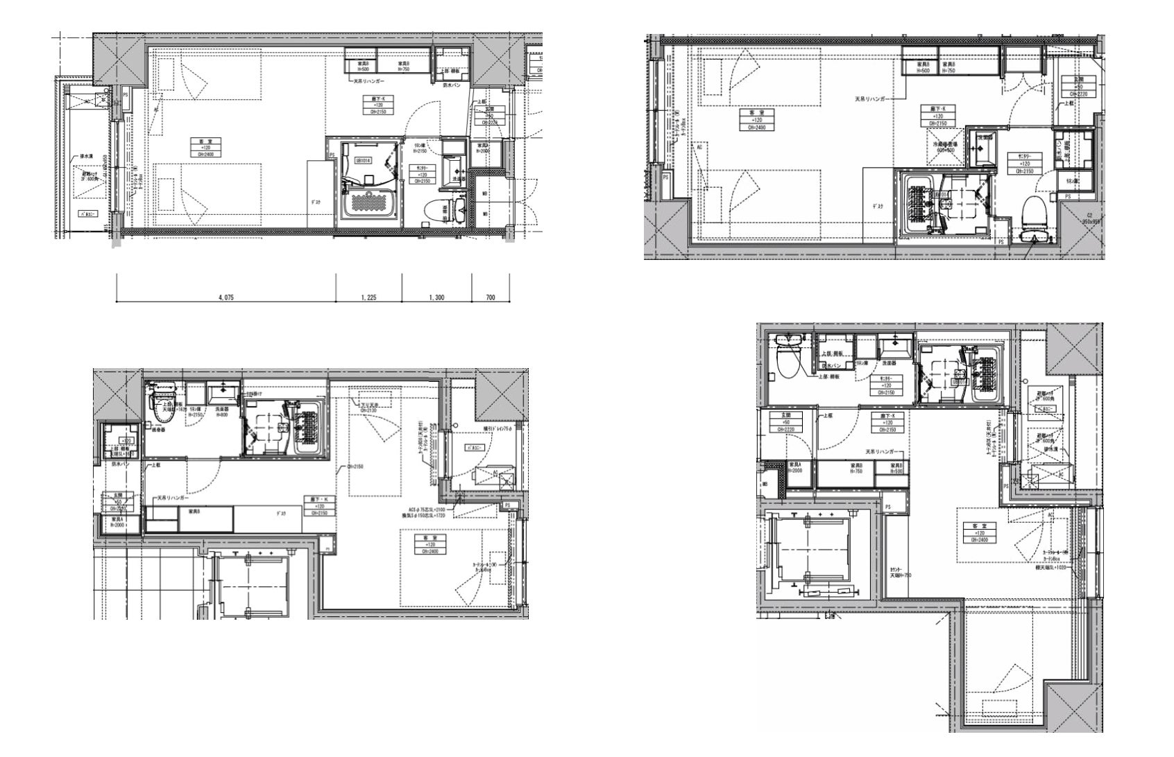 今回「LANG HOTEL 亀戸」お部屋の間取りは、下記4タイプございます。(内装未完成)
