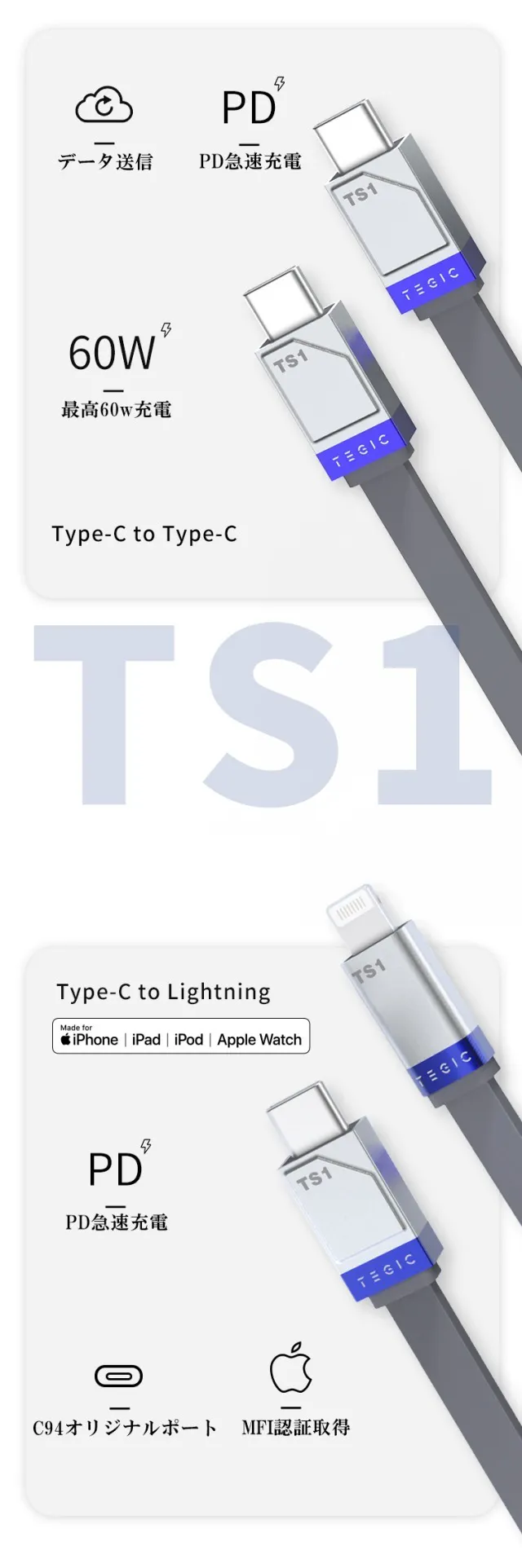 「TS1」Type-C to LightningはAppleの厳しい基準をクリアしたApple公式認定品です!