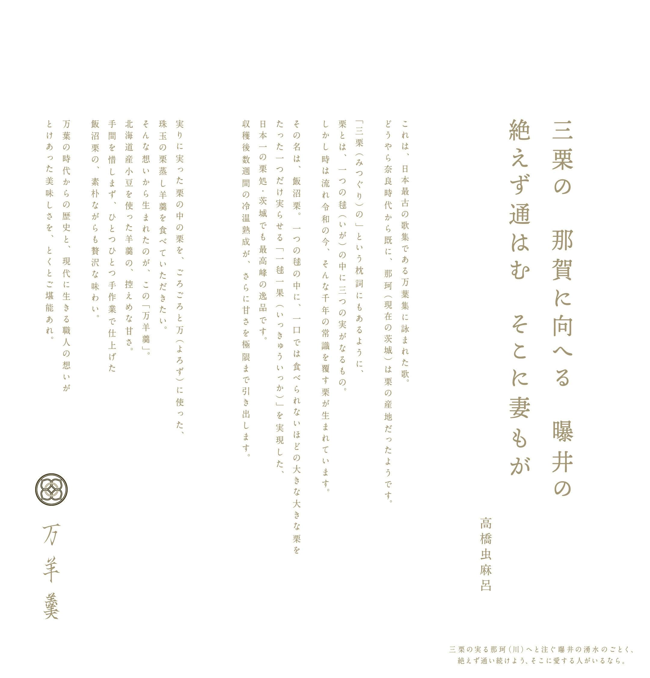 万羊羹はこの飯沼栗をごろごろと万(よろず)に使っています。