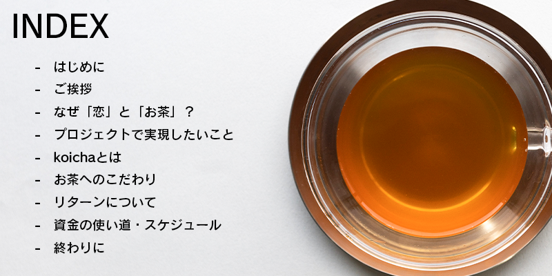 数あるプロジェクトの中から「koicha」をご覧いただき、ありがとうございます!