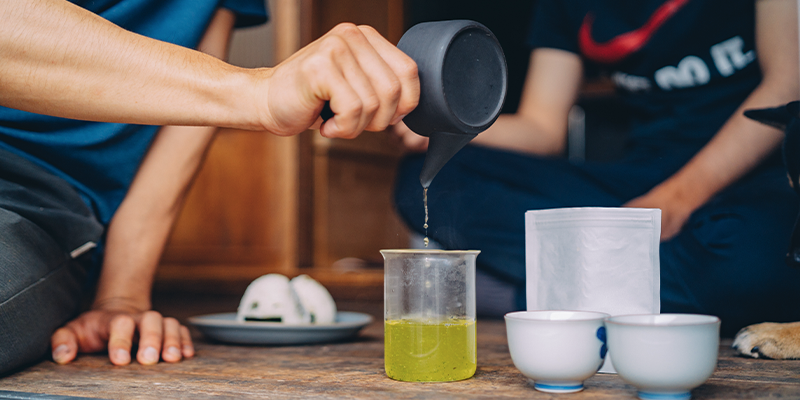 また、お茶に含まれる代表的な成分として、リラックス効果を与えてくれるテアニン、眠気覚ましや興奮作用のあるカフェインがありますが、これらは品種や淹れる温度によって抽出される成分量が異なります。