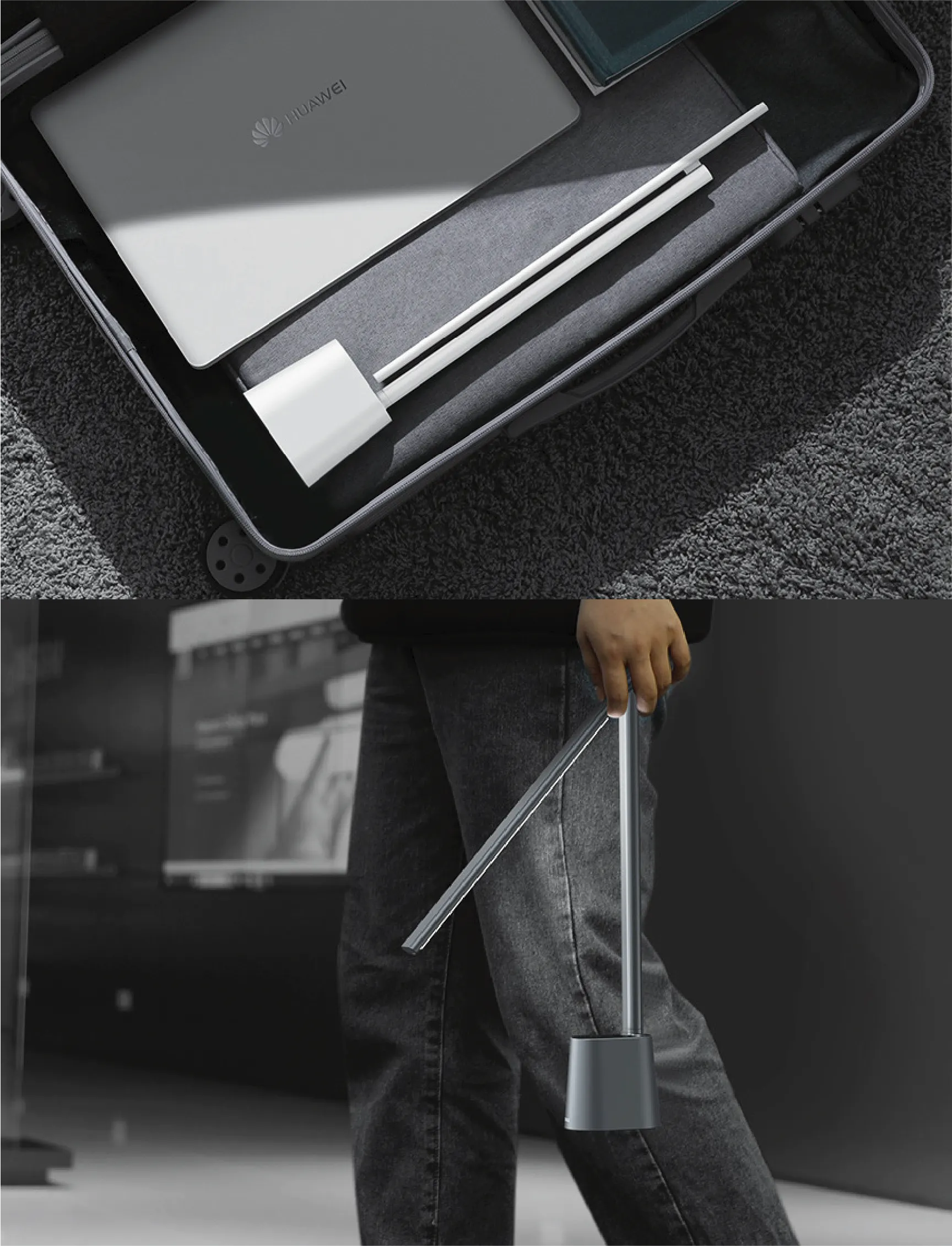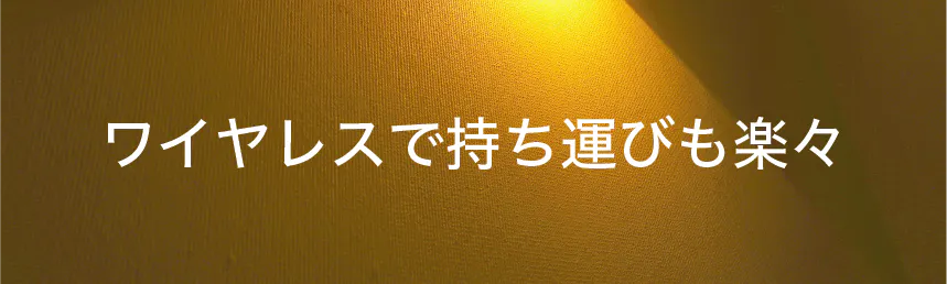 【Lumiera】は充電式バッテリーを備えていますので、電源がない場所でも使えます。重さはわずか555gなので持ち運びにも便利。部屋の中を移動したり、ちょっとした出張や旅行の際もコンパクトにバッグに収納できます。