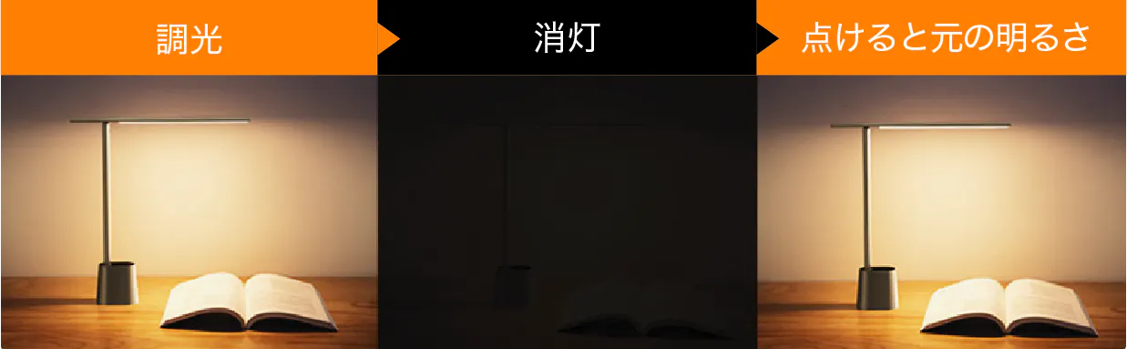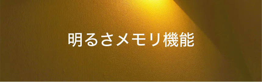 お好みの明るさに調整したらその明るさが記憶され、再点灯時には前の明るさで点灯します。毎回の明るさを調節する手間がなく、あなたのお好みの明るさをいつでも再現します。