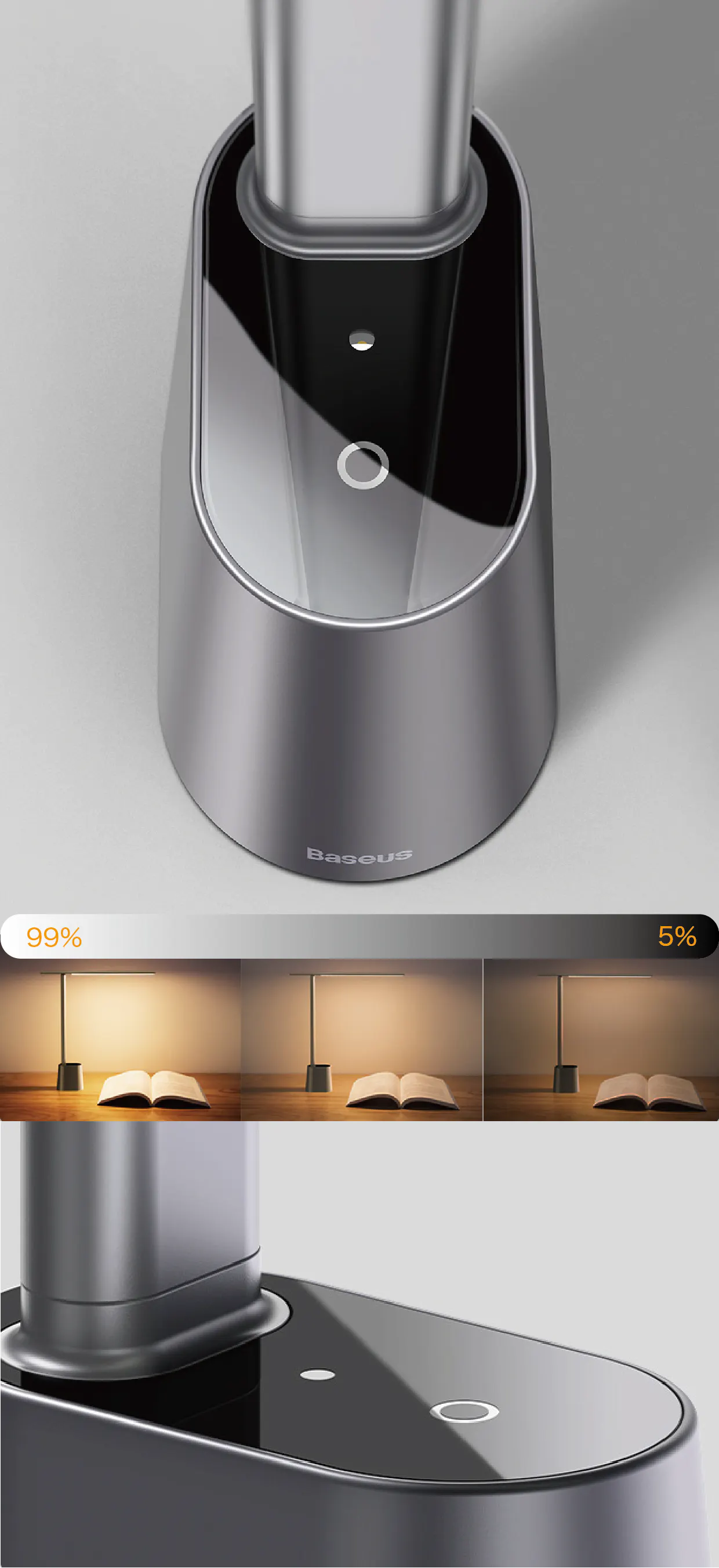 【Lumiera】は明るさを思い通りに調節できる無段階調光なので、パソコン作業、読書、細かい手仕事など、シーンに応じてお好みの明るさをスムーズに設定できます。