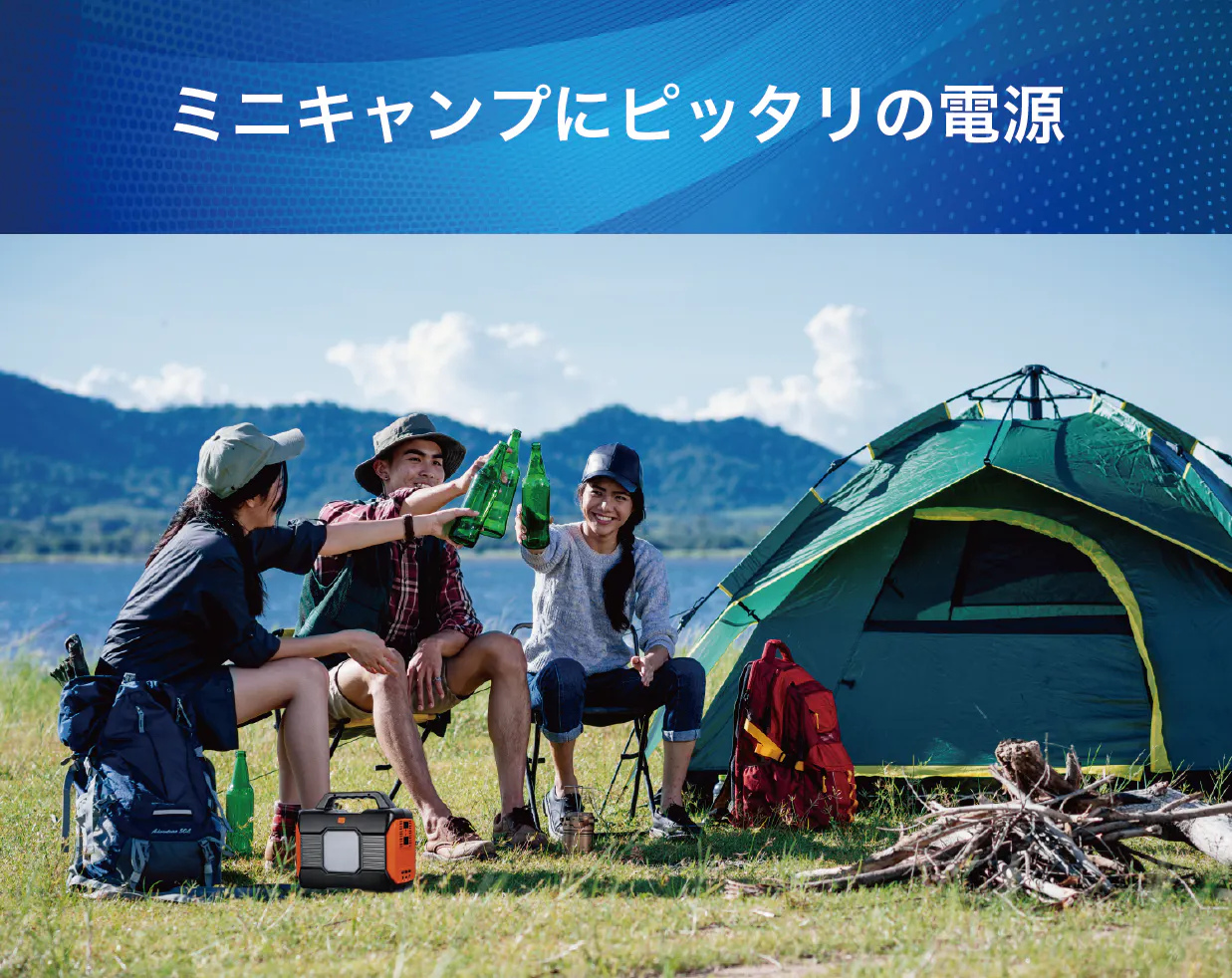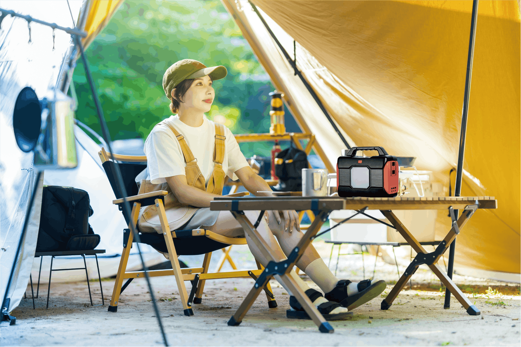 【Minivo】は重量はわずか3.4㎏という、子どもや女性、高齢者の方でも簡単に持ち運ぶことができる軽さなので、ソロキャンプや数泊のキャンプ、車中泊などに "ちょうどいい" ポータブル電源です。