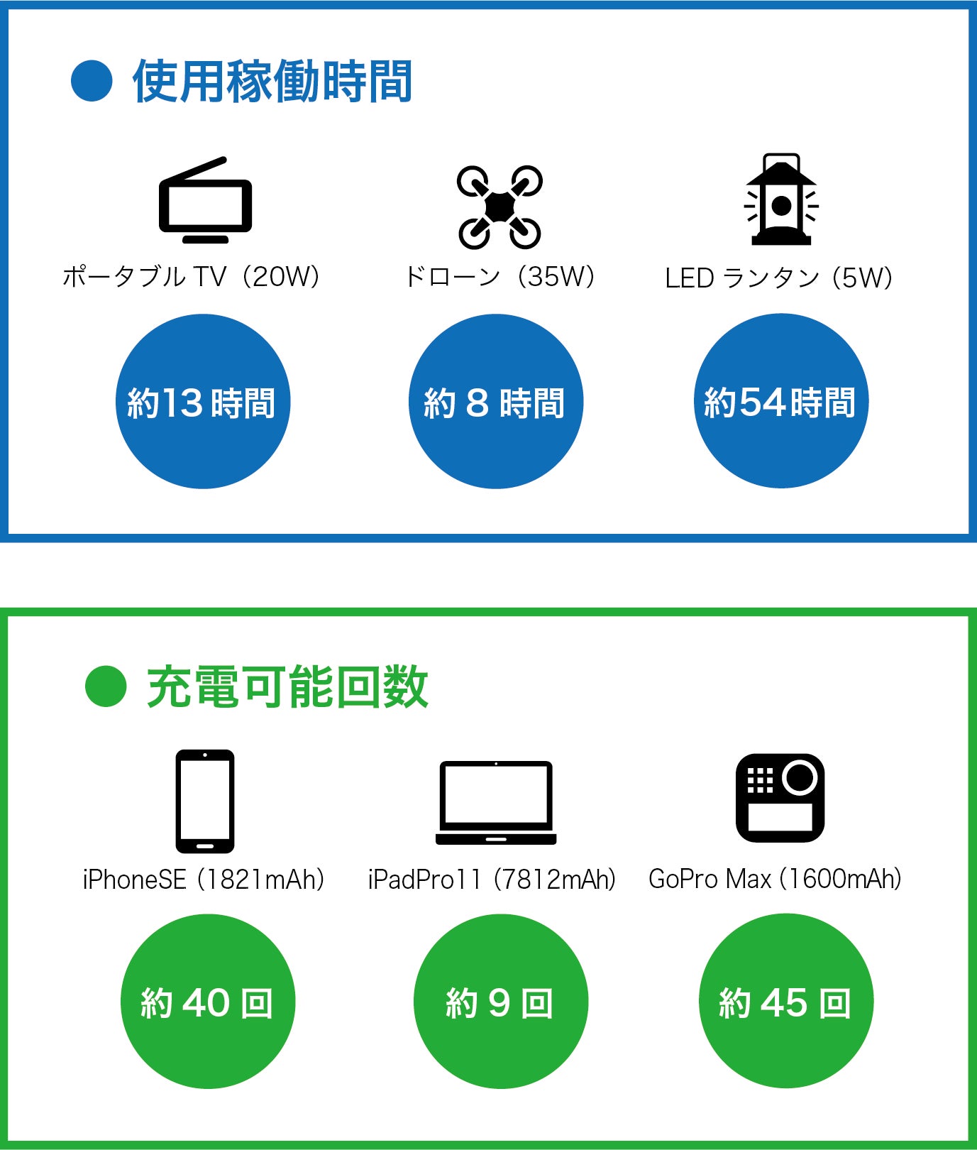 使用時間計算式=300Wh×0.9÷使用製品のW数