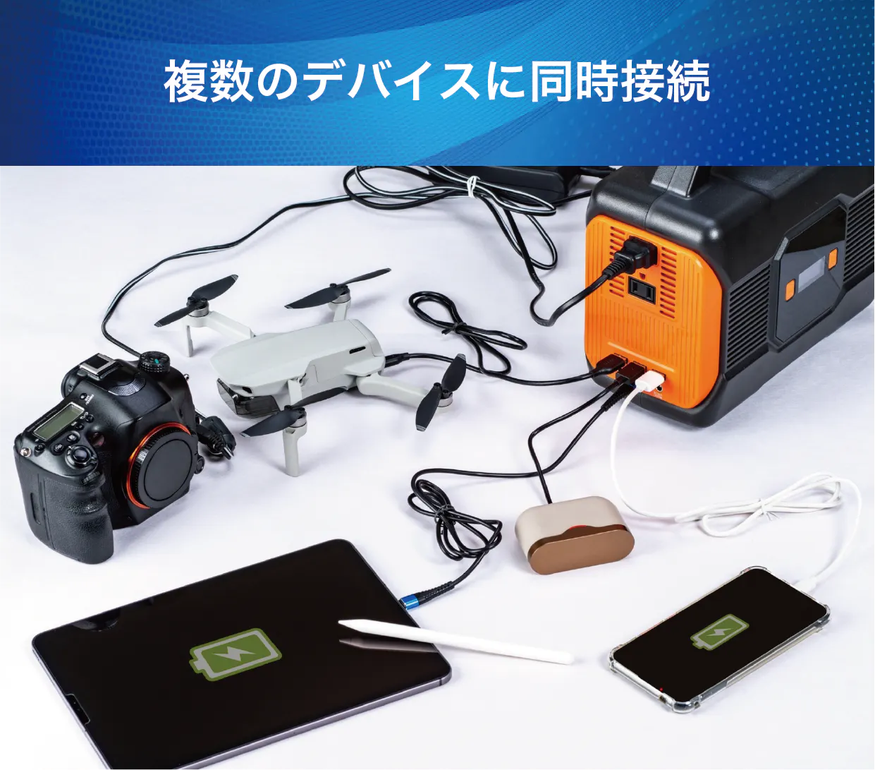 スマートフォンやタブレット、ゲーム機、ドローンなどさまざまな身近なガジェットへの充電に。