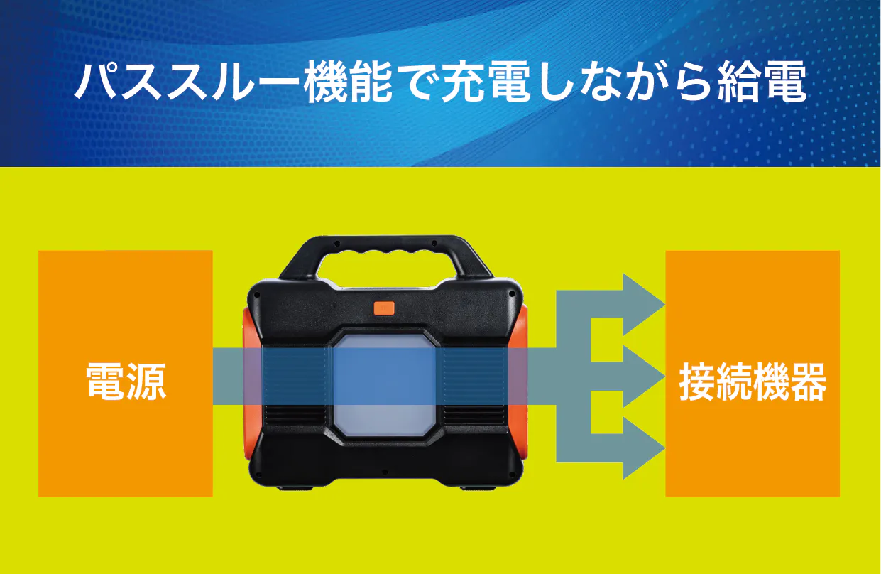 Q:パススルー機能を備えているため、本体充電中もデバイスに出力できます。