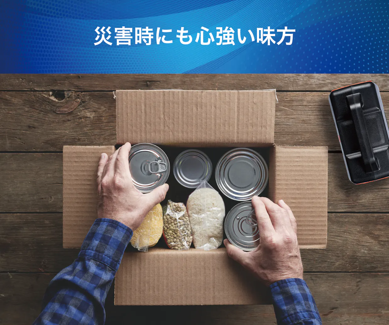 【Minivo】は災害時の非常電源としても活躍します。突然の地震や停電のときに、十キロ以上もあるポータブル電源を持ち運ぶことは現実的ではありません。でも【Minivo】なら重量わずか3.4㎏と軽量なので、女性や高齢者の方でも持ち運ぶことがでる、まさに "ちょうどいい" ポータブル電源です。