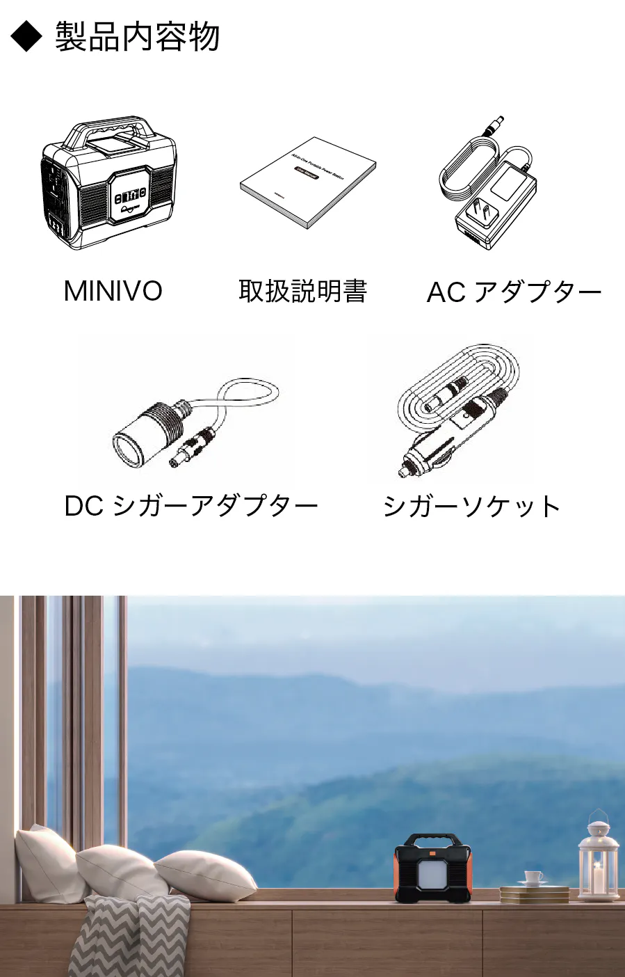 【Minivo】は80,000mAhの容量を持ち、最大出力600W(定格出力300W)と、そのコンパクトさからは想像もできないパワフルさです。