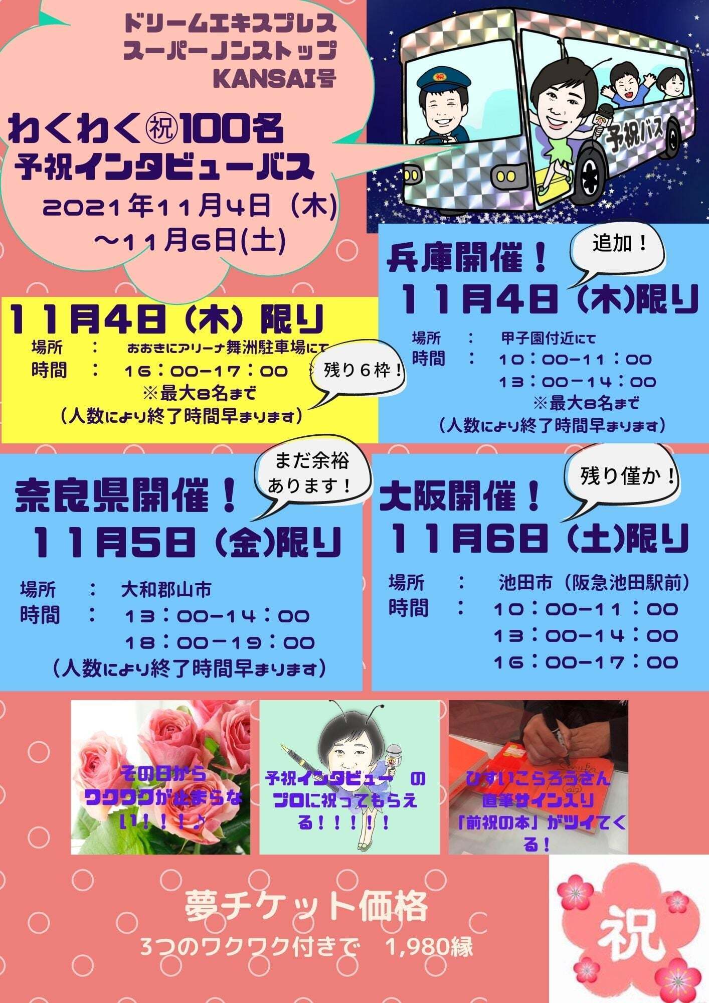 バスに乗った人に、将来の夢や小さい頃からの夢を聞く予祝インタビューをし、その夢が叶ったという前提で予めお祝いするのです!