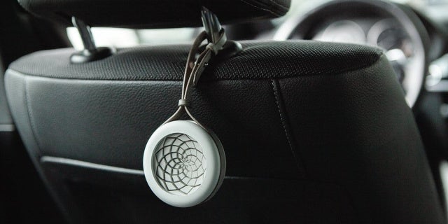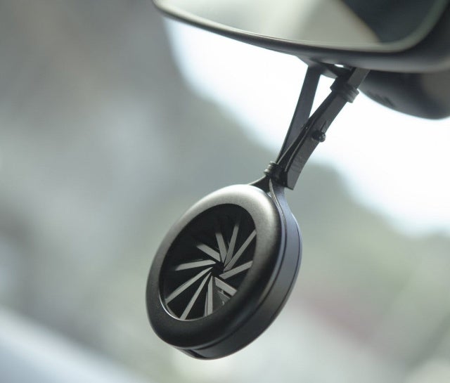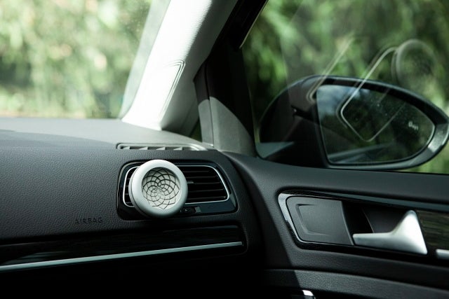 ▲座席に掛けることもできるので、後部座席の乗客も心地よい香りとスタイリッシュなデザインを楽しむことができます。