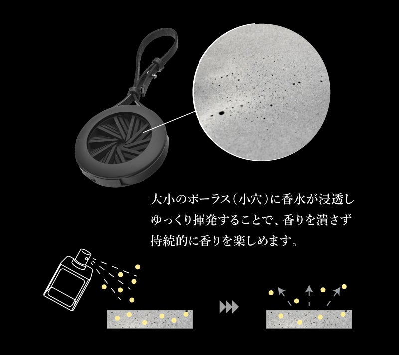 ▲独自に開発した特殊配合のセメントは、香りを吸収した後、乾燥状態でセメント自身のポーラスから上品かつ継続的に香りを放ちます。
