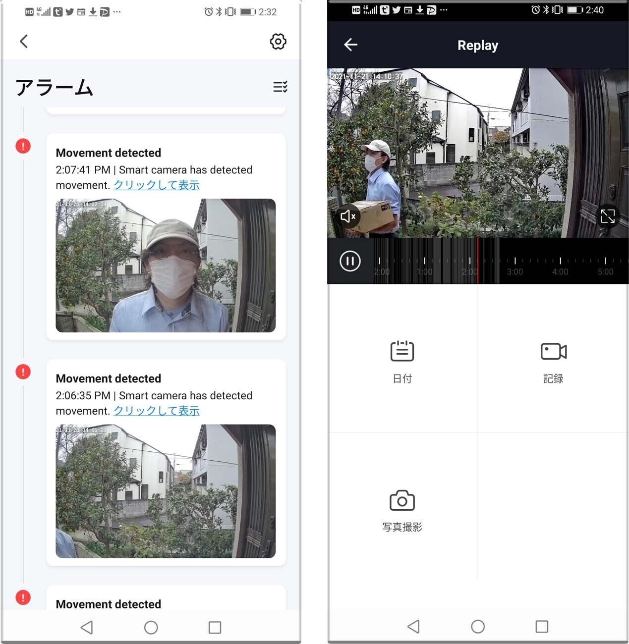 (右)検知して記録した映像だけを選んで確認することができます