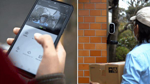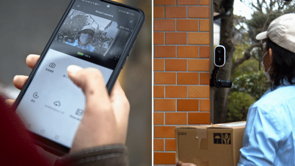 具体的なプロセスとしては、まず、配達員がドアの前に来たら瞬時にスマホに通知されます。そして、スマホを通して配達員に話しかけることで置き配をしてもらうことができます。カメラに映る範囲に荷物を置いてもらえば防犯にもなるでしょう。