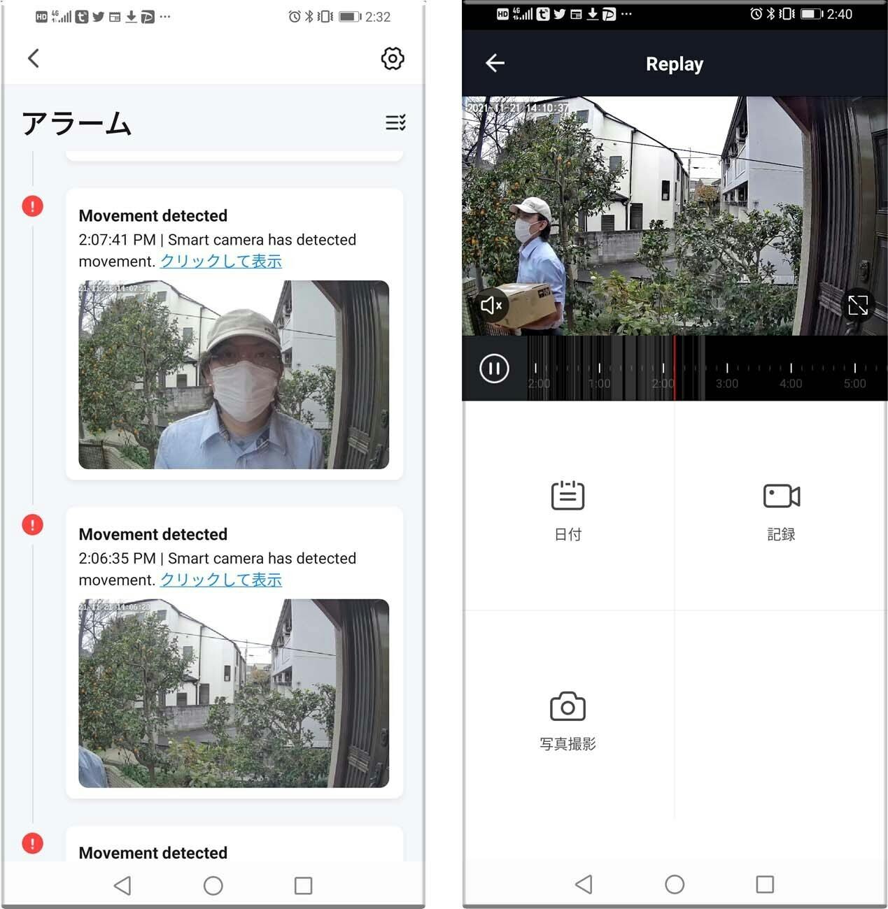 また、動きを感知するとWi-Fiを経由してユーザーのスマホにスナップショット写真付きでアラートメッセージを送信できます。