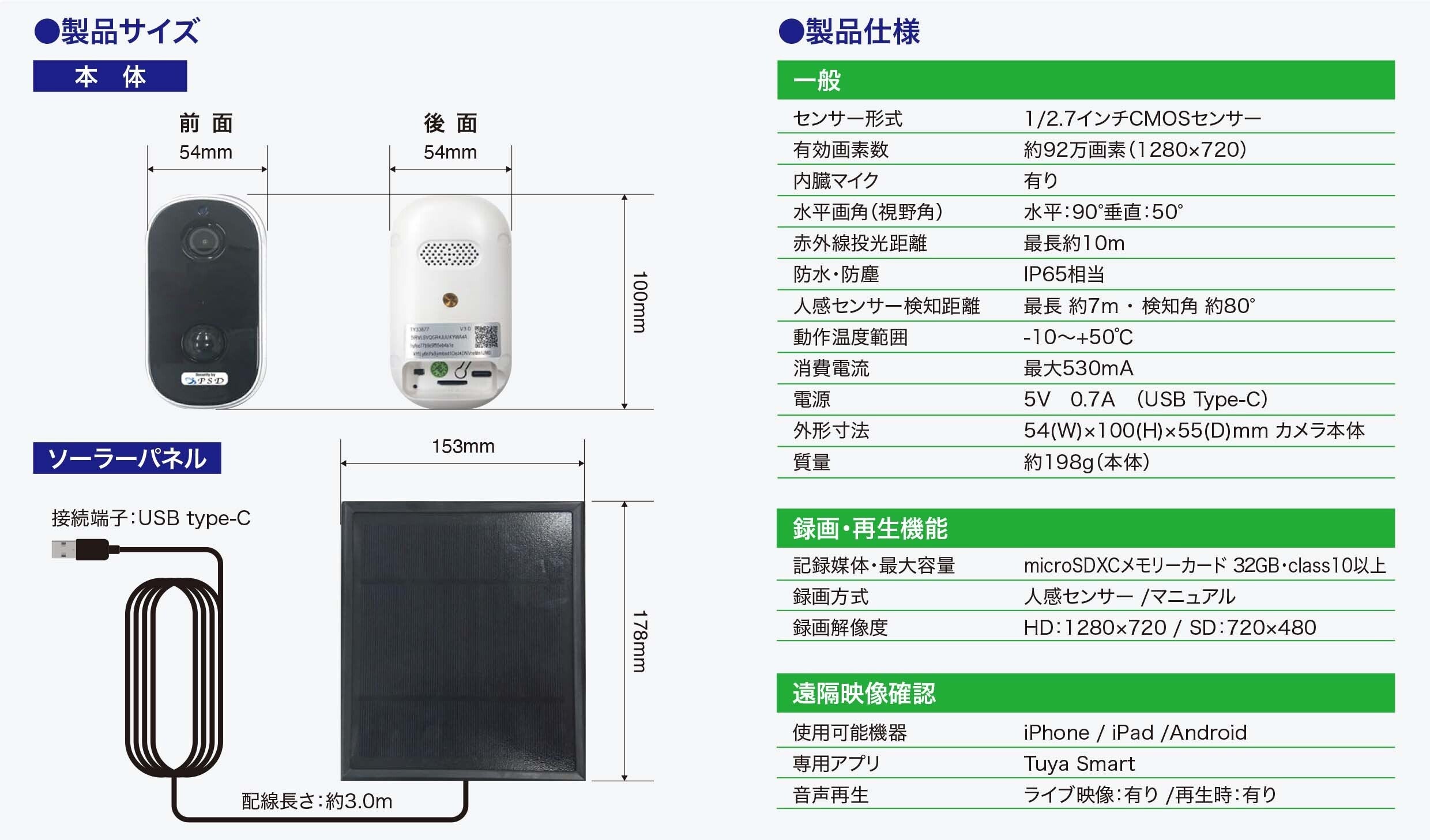 カメラもソーラーパネルも角度は自由自在