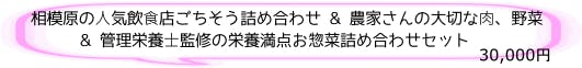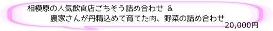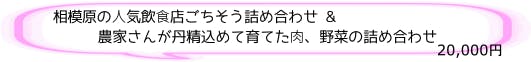 ⼈気飲⾷店ごちそう詰め合わせと、地元の農家さんが愛情たっぷり育てた野菜と神奈川産の高座豚生ハムをセットにしました。