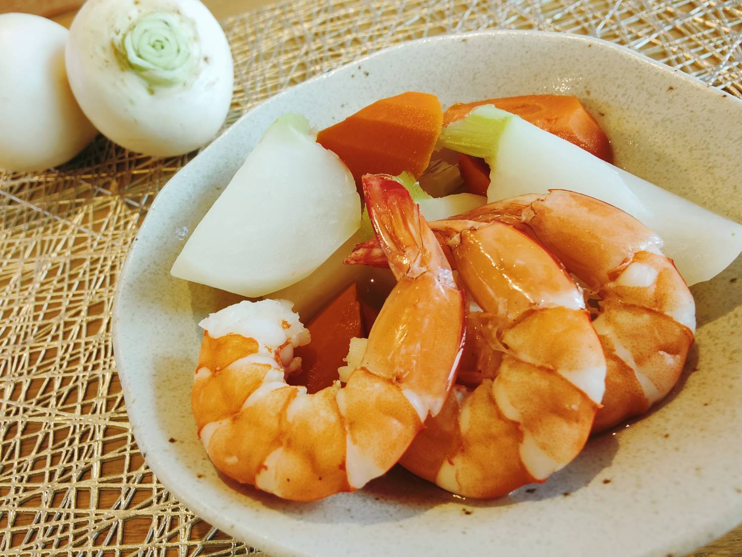 ③背曲がりエビとかぶの含め煮