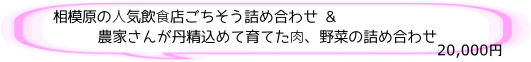 ⼈気飲⾷店ごちそう詰め合わせと、地元の農家さんが愛情たっぷり育てた野菜と神奈川産の高座豚生ハムをセットにしました。