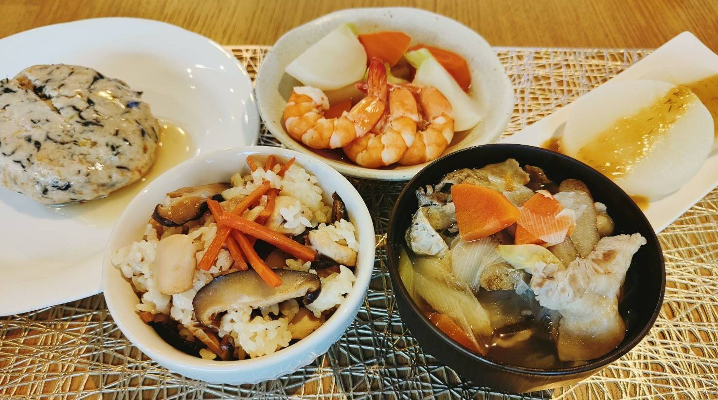 ③背曲がりエビとかぶの含め煮 ④相模原しいたけの炊込みご飯の素 ⑤やまゆりポークの豚汁