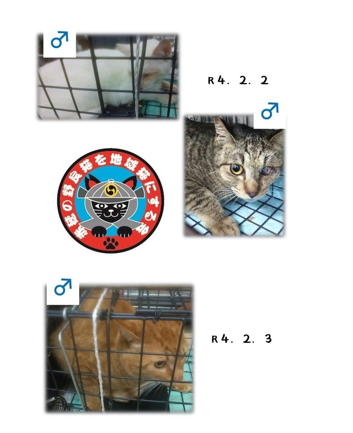 2月2日は片目を無くした猫、怪我して眼膜が剥がれてる猫のオス2匹。外での生活の厳しさが伝わってきます。