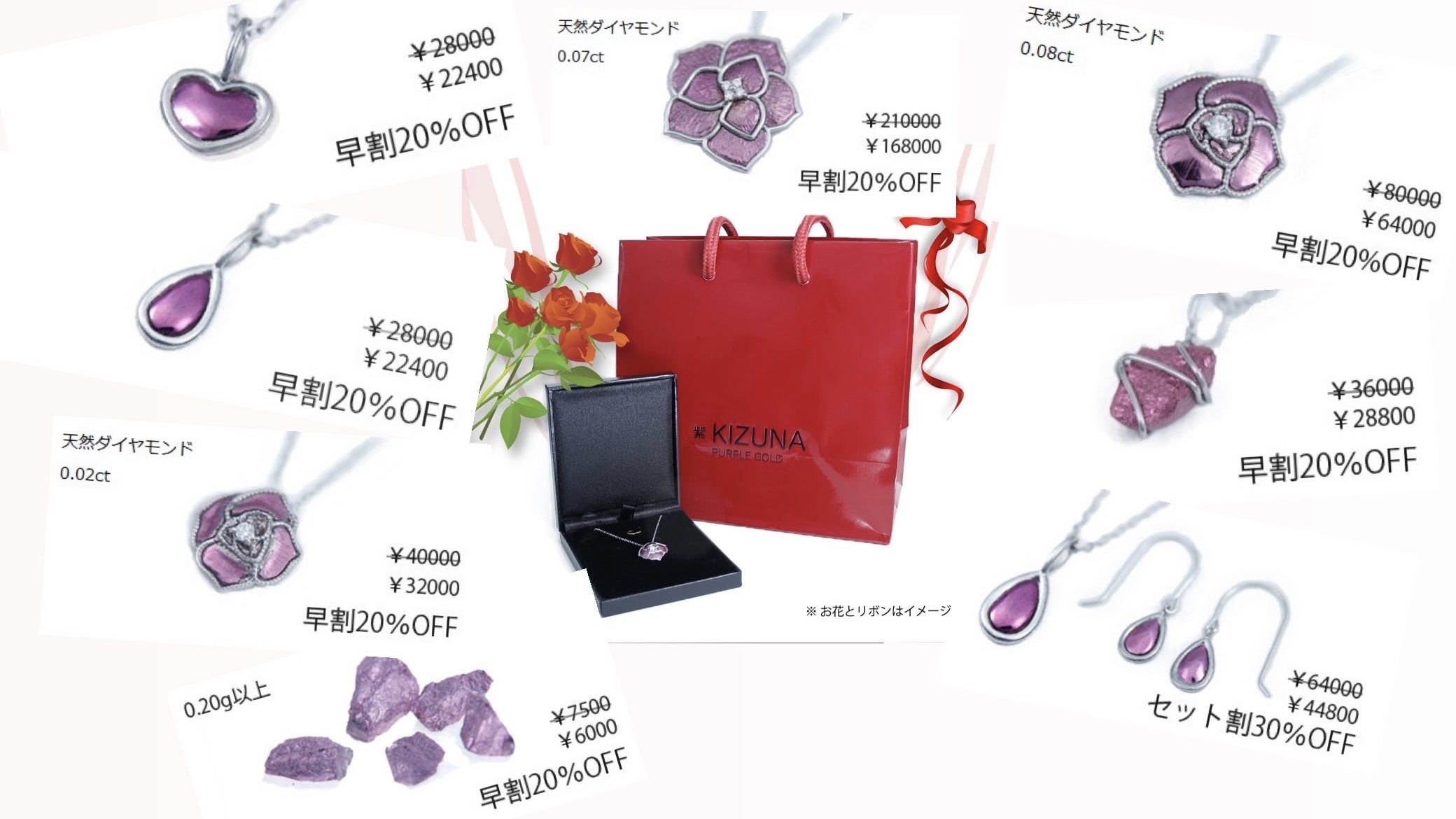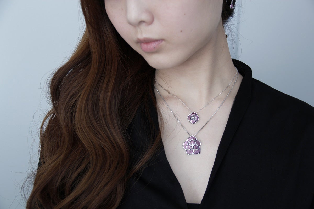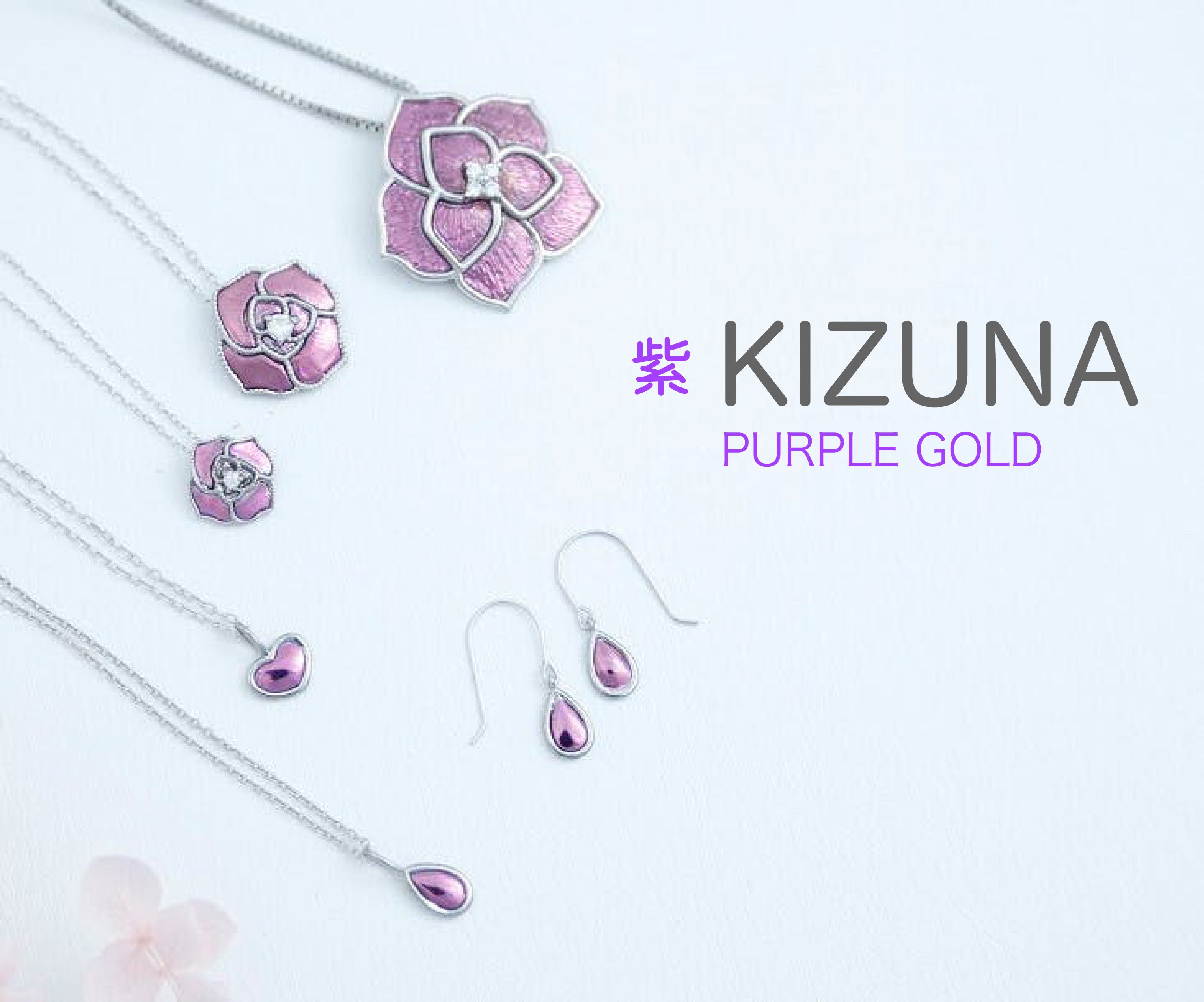 古来より高貴の色とされてきた紫色のパープルゴールドジュエリーが、長い研究の末の新技術開発により、様々なデザインができるようになりました。この鮮やかな紫色に輝くパープルゴールドジュエリーを、ぜひ手に取って頂いてその美しさを堪能してほしいと思います。この紫色のジュエリーが、皆様の日常に彩りを加えることを切に願っております。