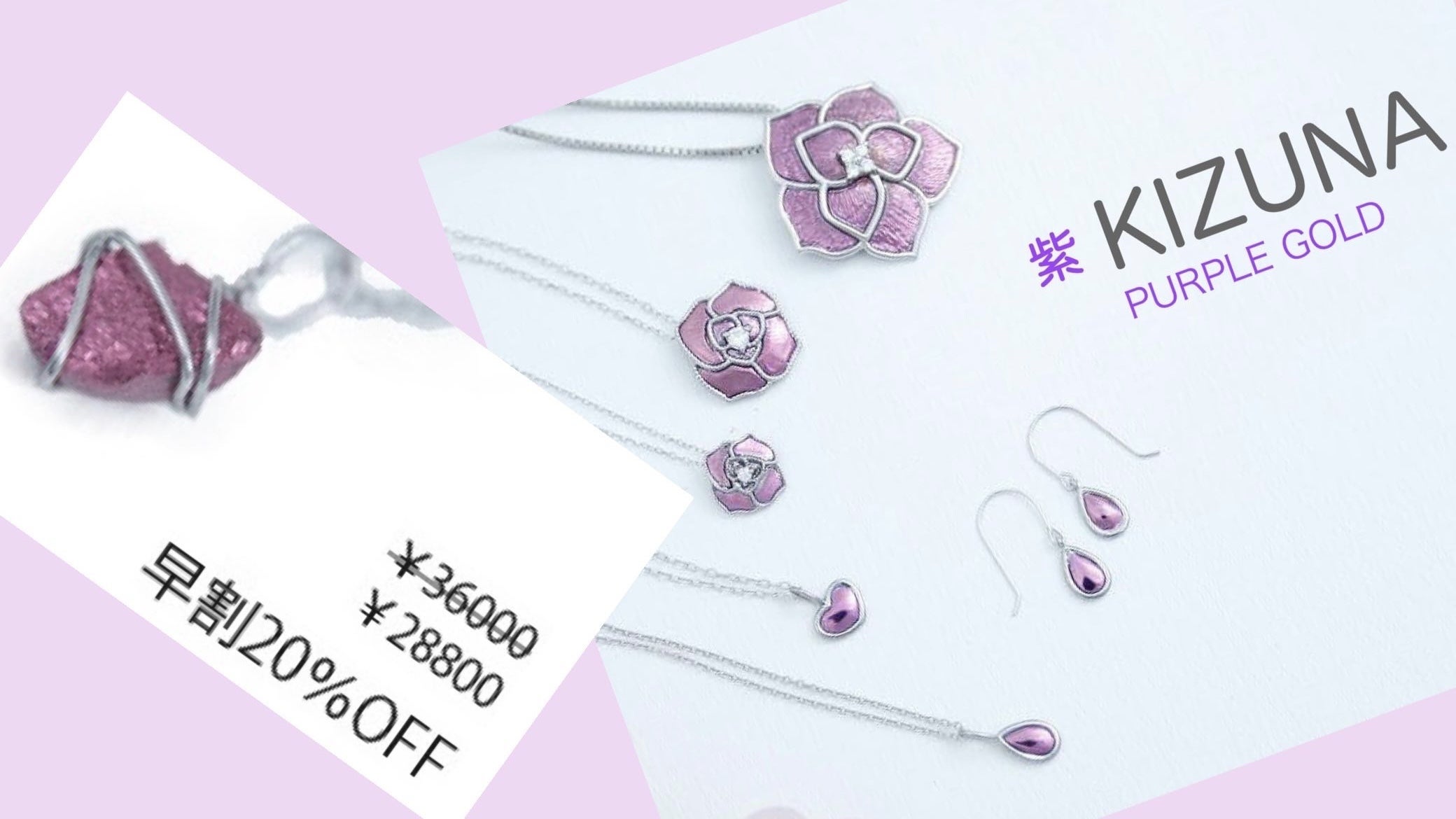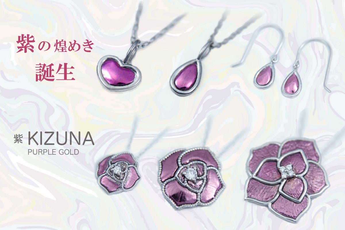 今回新たに取得した特許技術で、使用する地金のプラチナと『パープルゴールド』の2つの金属が交じりあうことから、『人と人 』、『人とモノ 』との絆を感じとれるコンセプトをもとに『紫 KIZUNA』と名付けました。