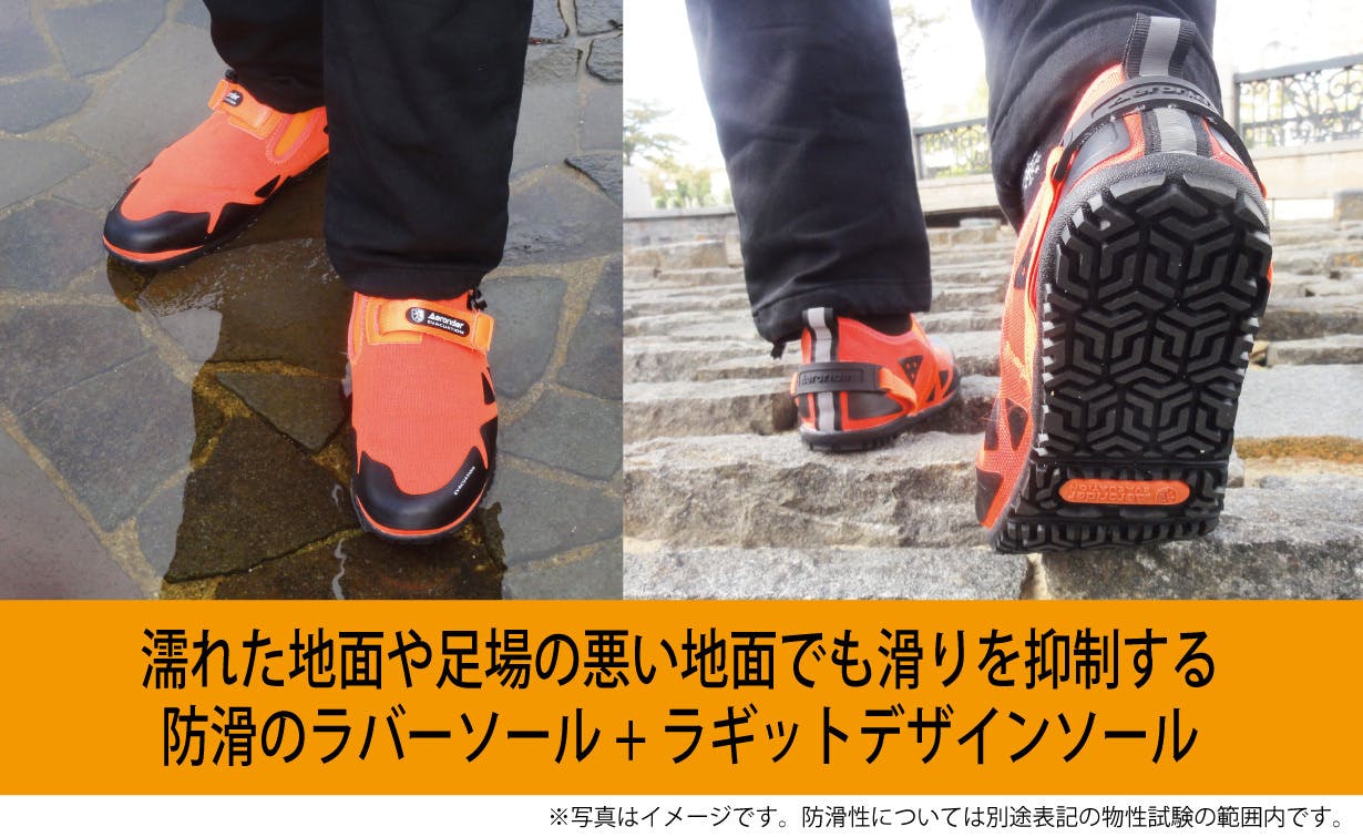 ③多くの防護機能を備えた防災シューズ。災害時に想定される危険から足を守る機能が満載です。