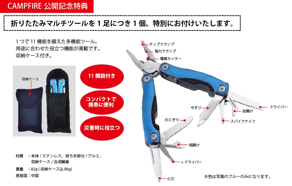 ※開発中の製品(靴&特典マルチツール)につきましては、デザイン・仕様が一部変更になる可能性もございます。