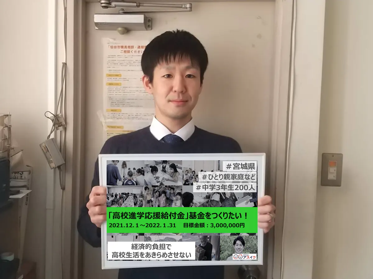 お金を理由に高校新生活のスタートでつまづく高校生を一人でも減らしたい。この思いに共感してくださる方々とともに、高校進学を支える取組「高校進学応援給付金」をはじめようと思います。