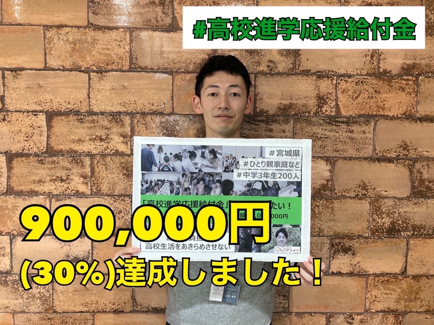 現在900,000円をこえ、30%を突破しました!応援ありがとうございます。