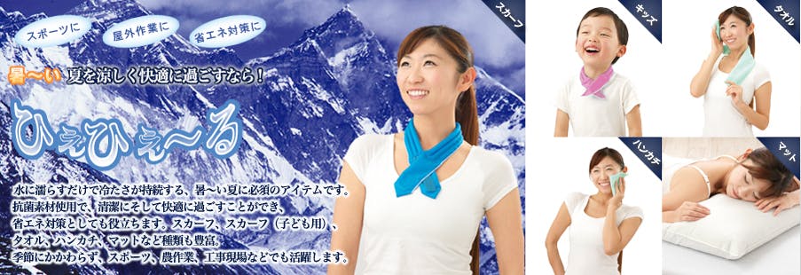 夏の暑い時に外出し、汗だくになりお悩みの方から、大好評の、人間の発汗作用を応用した体に優しい暑さ対策商品『ひえひえ~る』