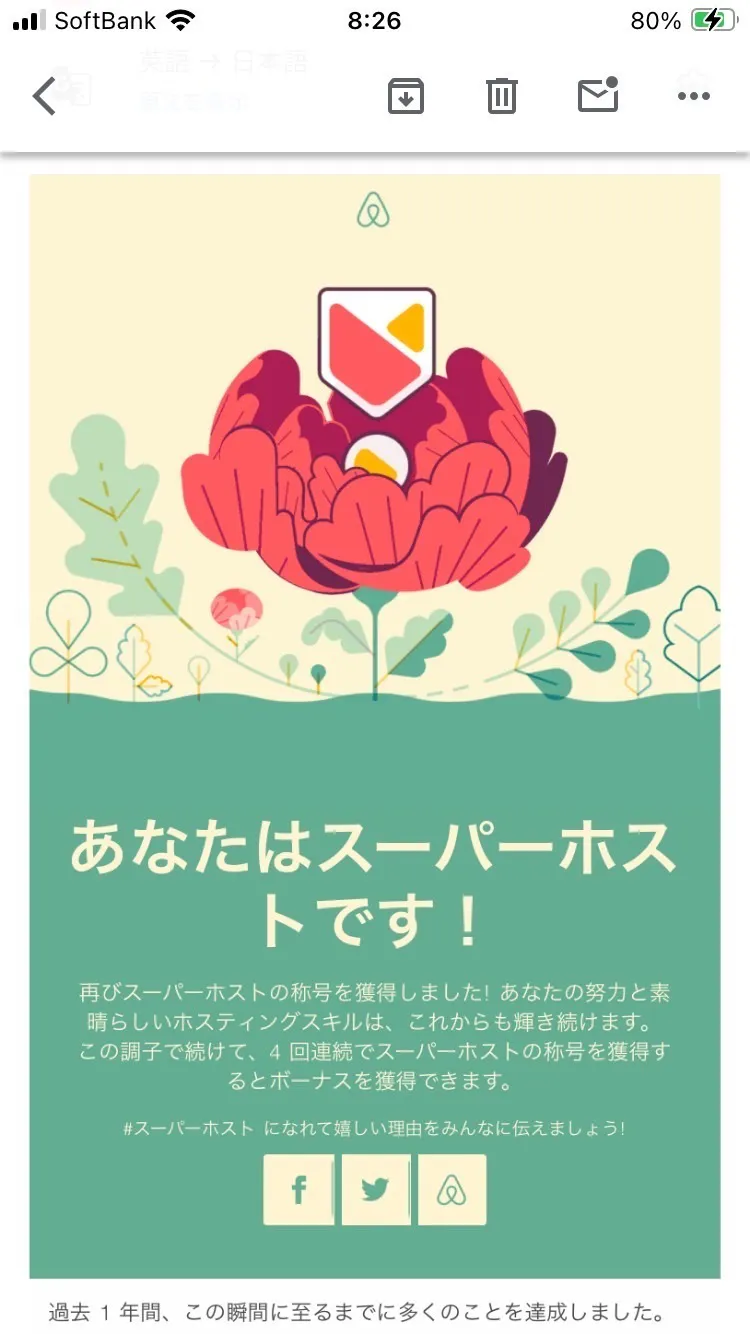 airbnb様より 2回目のスーパーホストをいただきました。