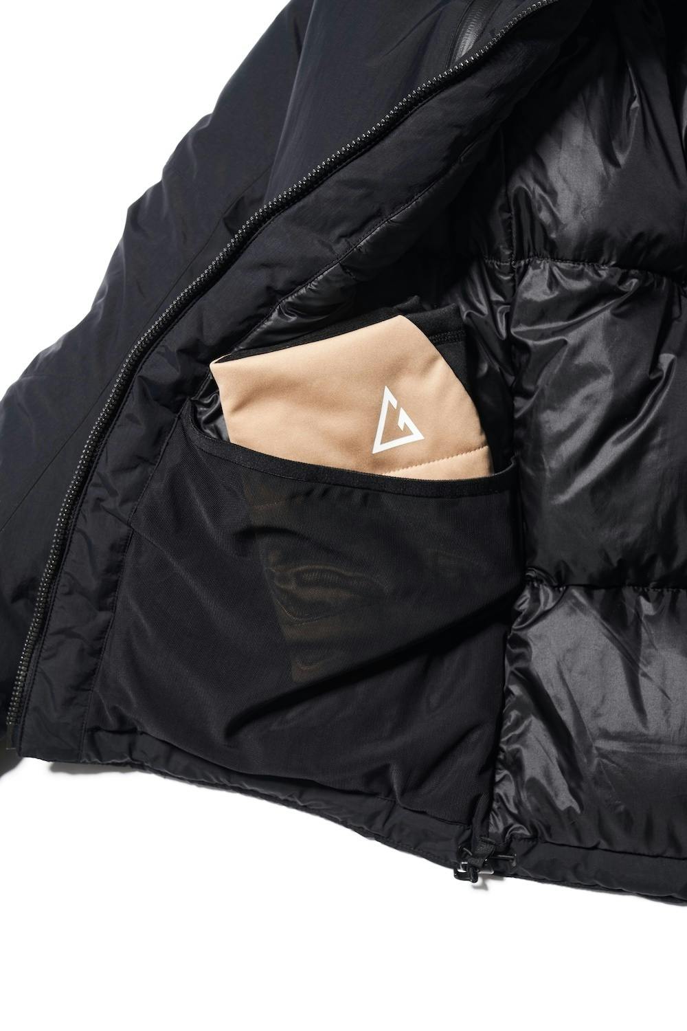 裏側には伸縮性のあるメッシュポケットを装備。防寒グローブがスッポリ収まる⼤容量でありつつ、軽くて薄いので着⼼地に影響を与えません。グローブに付着した雪がポケット内にたまらないのもポイント。
