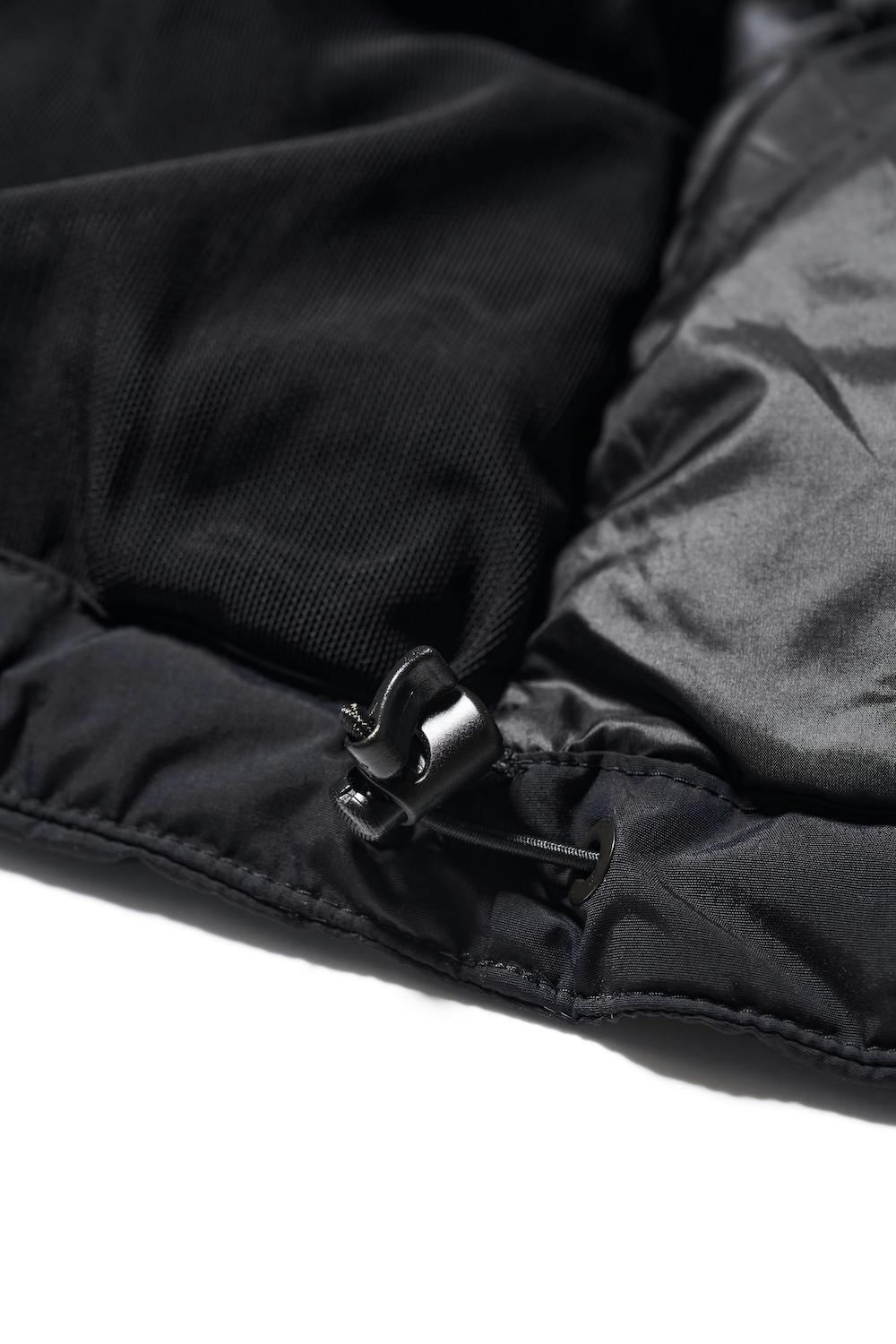 フード周りと裾にはアジャスターコードを装備しています。引き絞ることで動きを妨げることなく体にフィット。あたたかな空気が逃げるのを防ぐ役割もあります。コードを開放し、リラックスするのも簡単です。