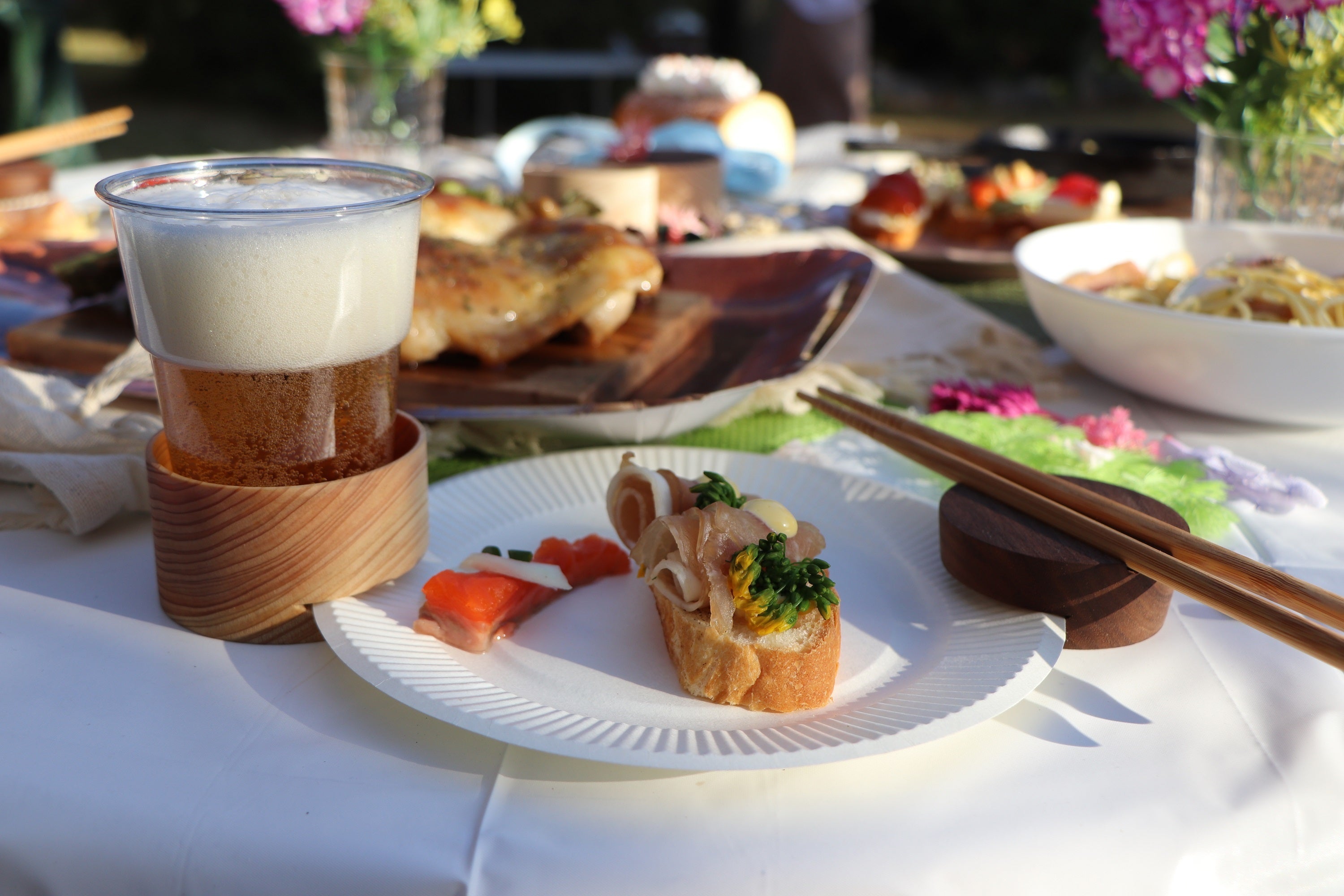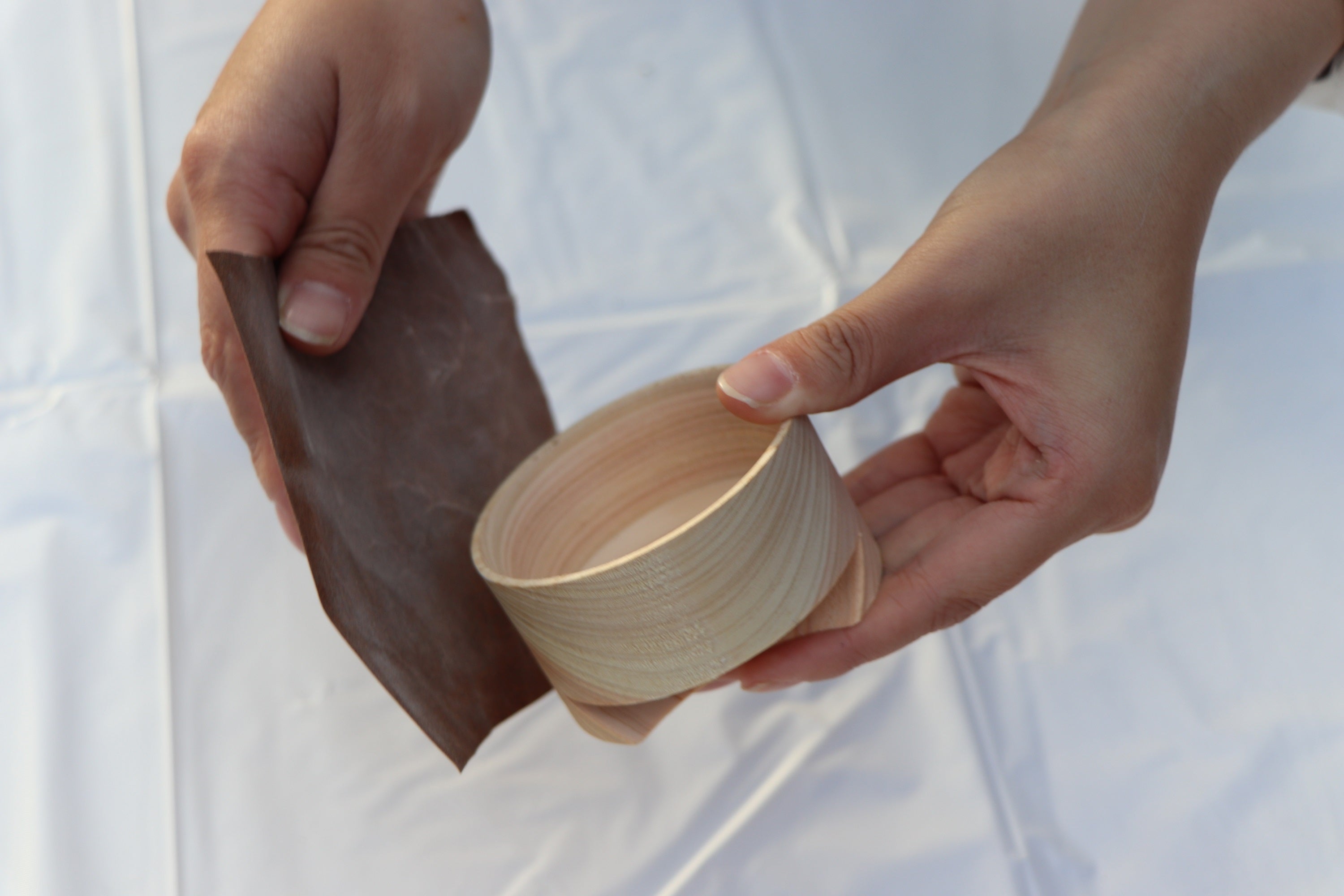 ヒノキは非常に軽量な木材で、紙皿を押さえられるのに持ち運びが苦にならない軽量感が実現しました。
