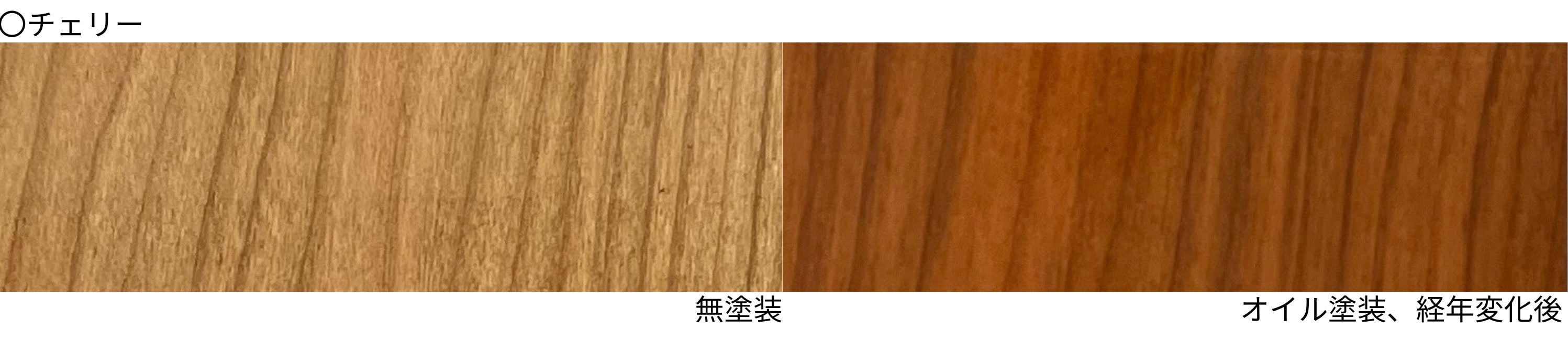 色の変化が他の木材よりも早く、購入直後とその後の色合いを楽しめます。