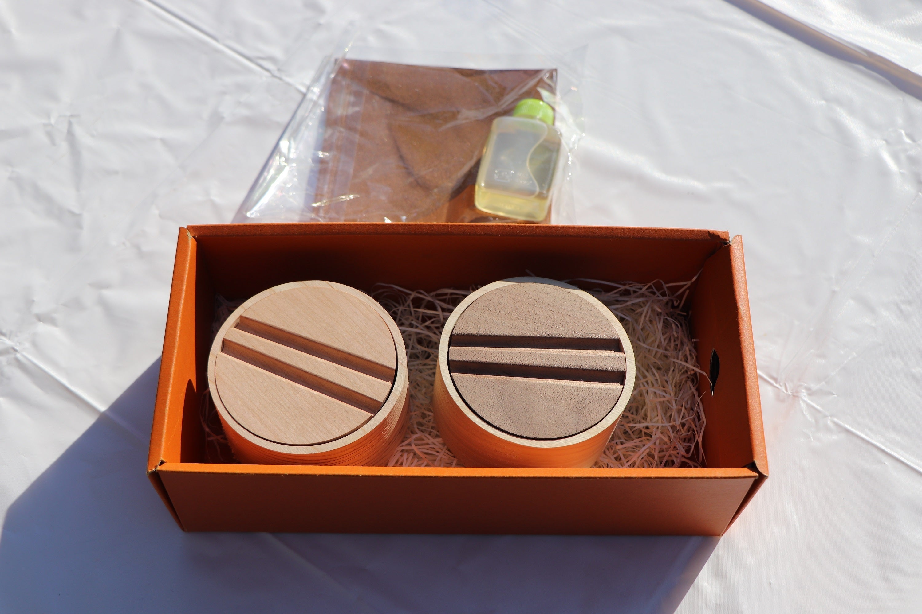 紙やすりとオイルなので、大人と一緒に幼稚園くらいの子どもから楽しめます。