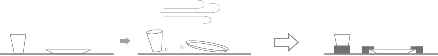 しっかりと挟むことで紙皿が固定され、風で飛んで行ったりひっくり返ってしまったりすることはありません。