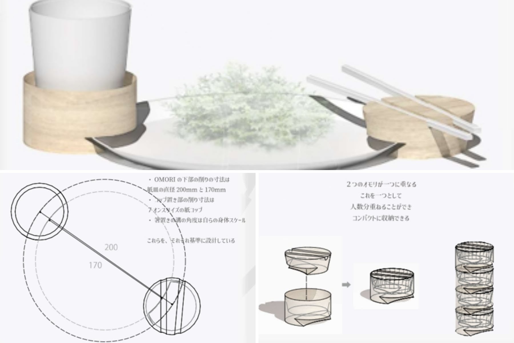 『OMORI』は直径170㎜〜200㎜の紙皿を基準に設計。