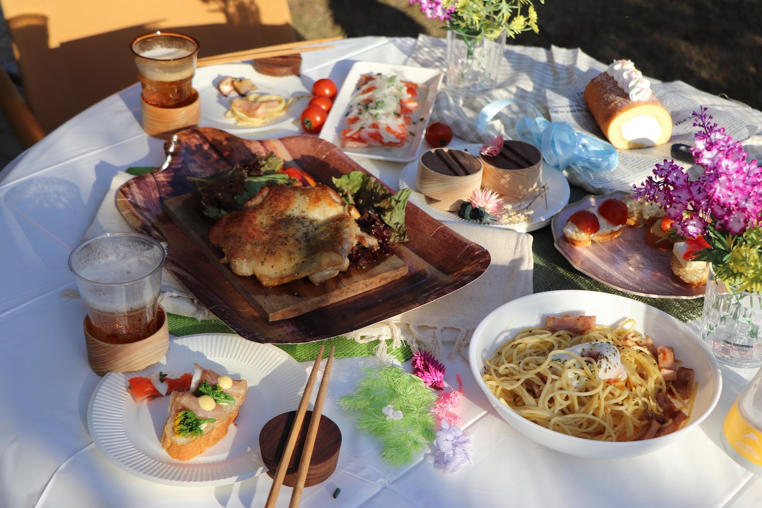 『OMORI』があるだけでナチュラルな雰囲気になり、いつものバーベキューも一気におしゃれ度がUP。