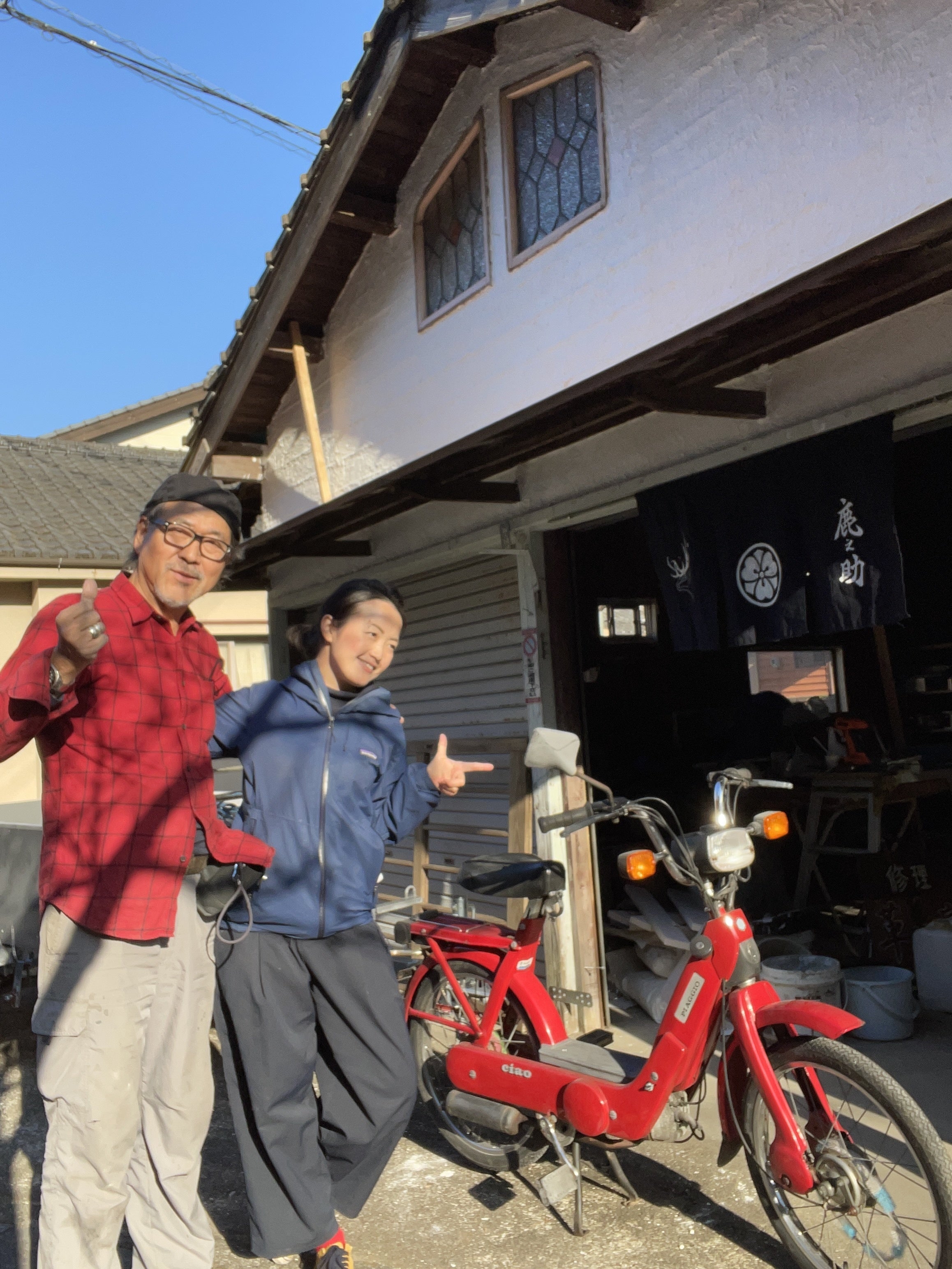 「クラウドファンディング、手伝うのはいいけどタダで手伝うのはなんだか違うんだよな〜。私だって裕福ではないし暇じゃない、でも手数料もらうとなるとその分上乗せしてお金を集めなきゃいけないし。でも手伝いたい・・・」と考えていると、工房の中に1台の赤いバイク!