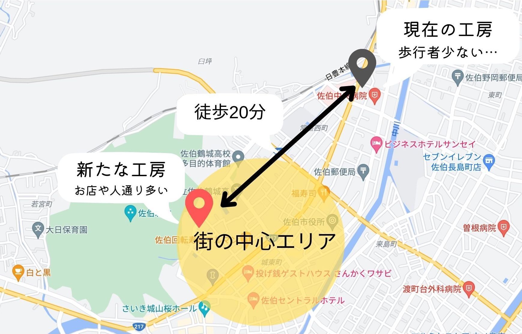 修理を目的に来てくれるお客さんにとっては問題ありませんが、新たに作り出す商品をふらっと立ち寄って手に取って知ってもらうには不利な立地(周辺を歩いている人が少ない)・物件の状況(間口が狭く、中の様子が見えない etc...)です。