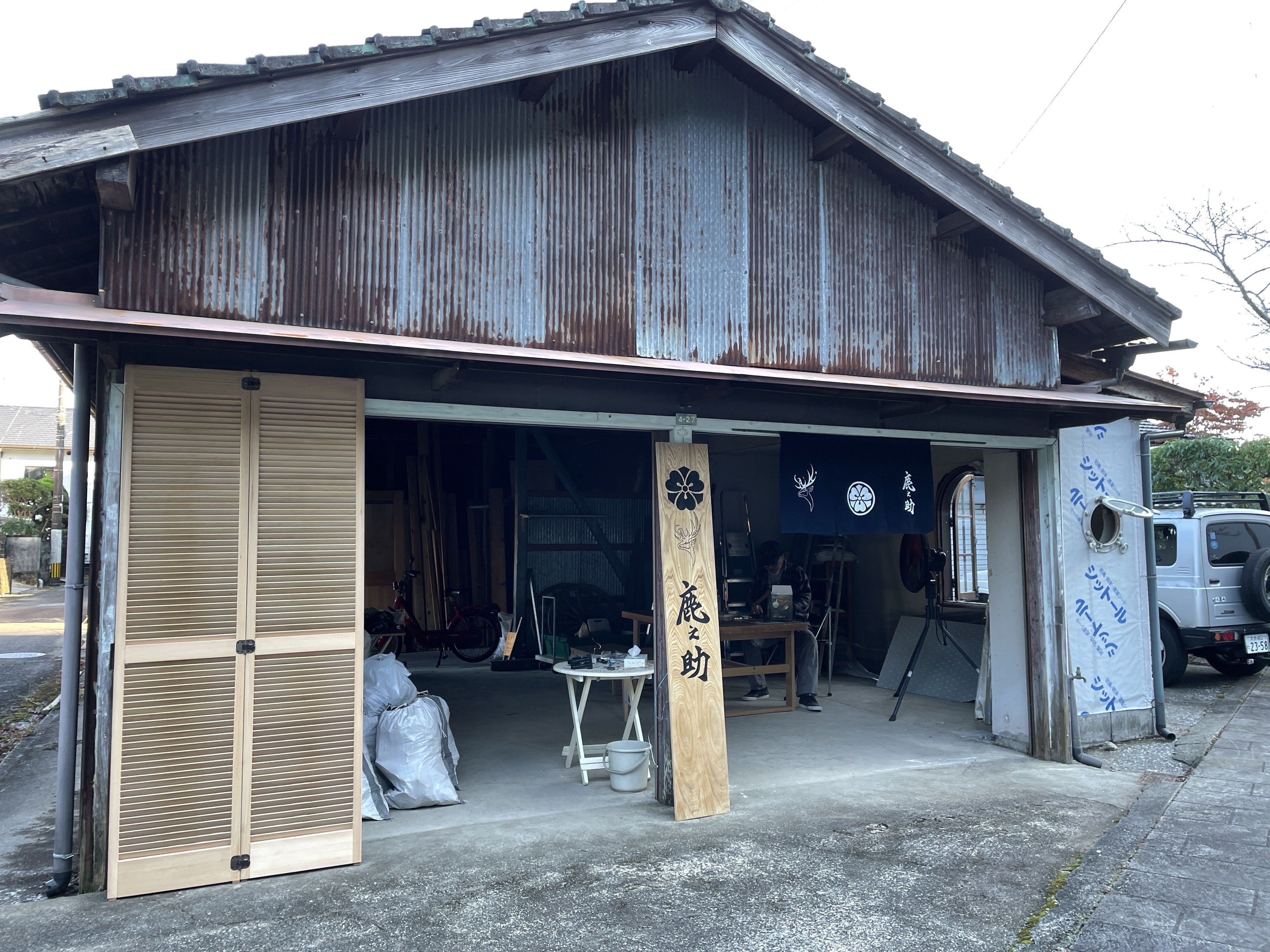 町の中心部からは少し離れたビルに入っている現在の工房から、よりよい条件を求めて町の中心部のガレージを借りて工房を引っ越ししているらしいです。