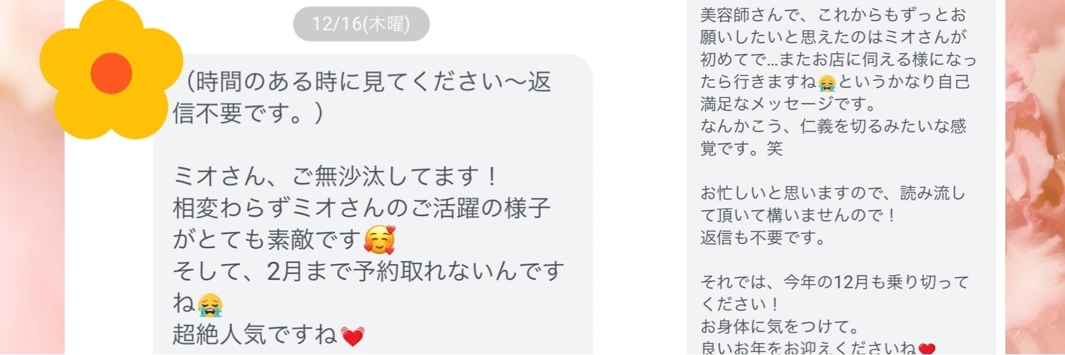 ※こちらはミオさんへ送られてきたお客様からのメッセージです。