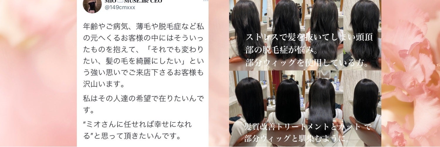 顧客0での入社後、ミオさんのお客様に対する情熱や活動が Twitterで話題となり、たくさんのファンとお客様に支持され、伝説的な功績を積み上京して4年で、美容師としても女性としてもさらなる成長とお客様へ提供したい新しいカタチを生み出すために独立。