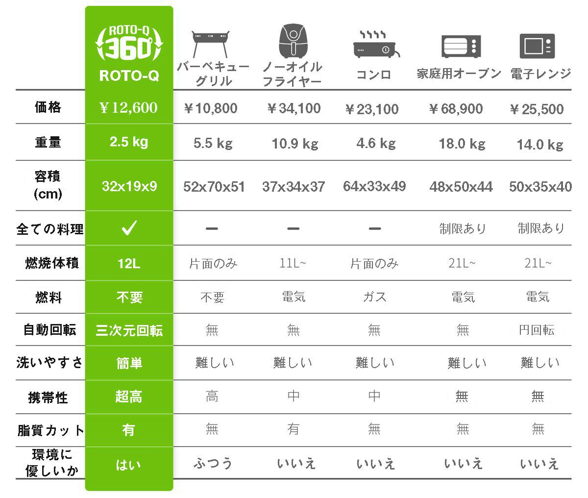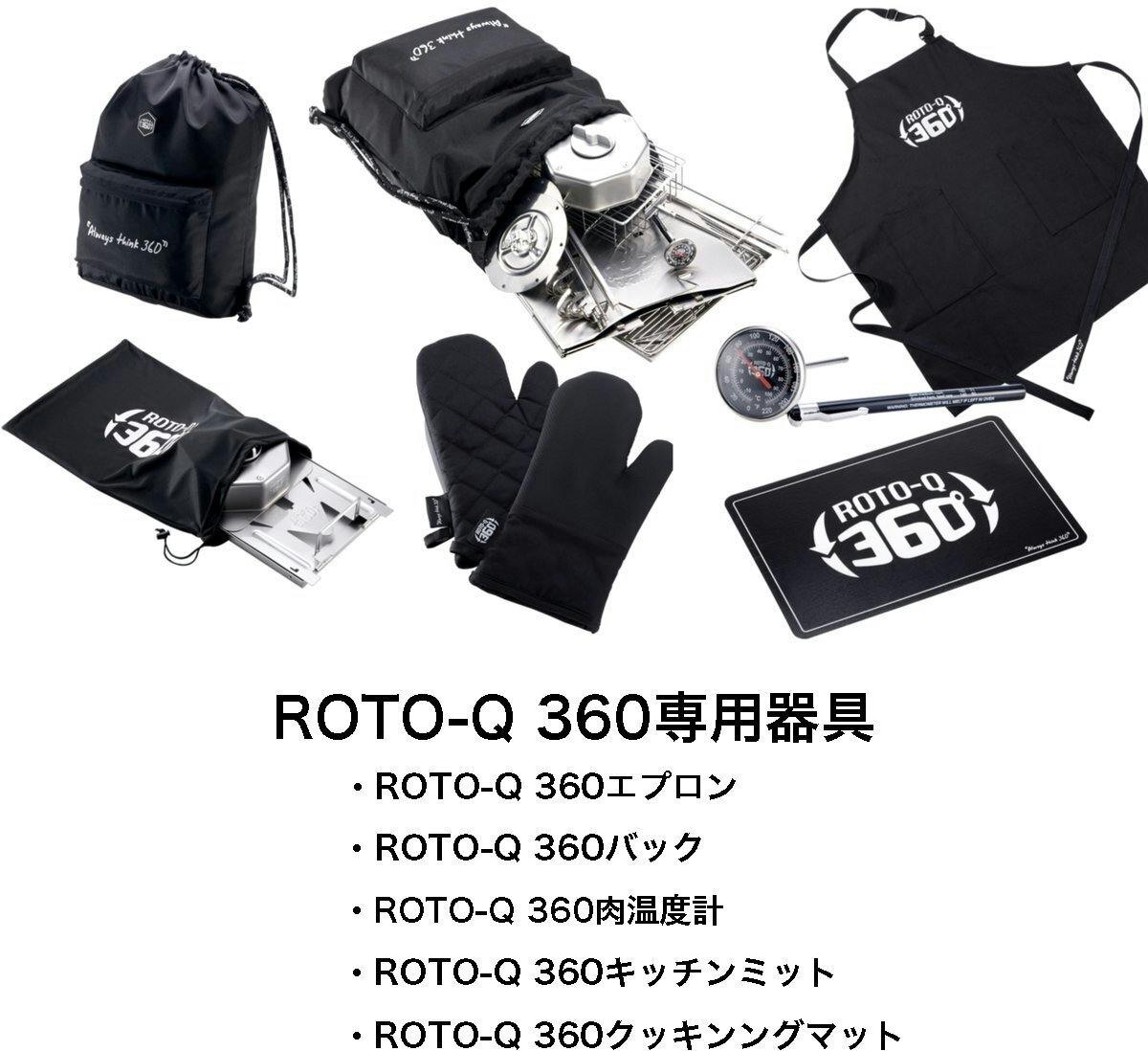 コンパクトなデザインのROTO-Q 360は。持ち運びに便利なだけでなく、ガス/炭火のグリルや焚き火などに取り付けて、キャンプや旅行なでで使用することができます。
