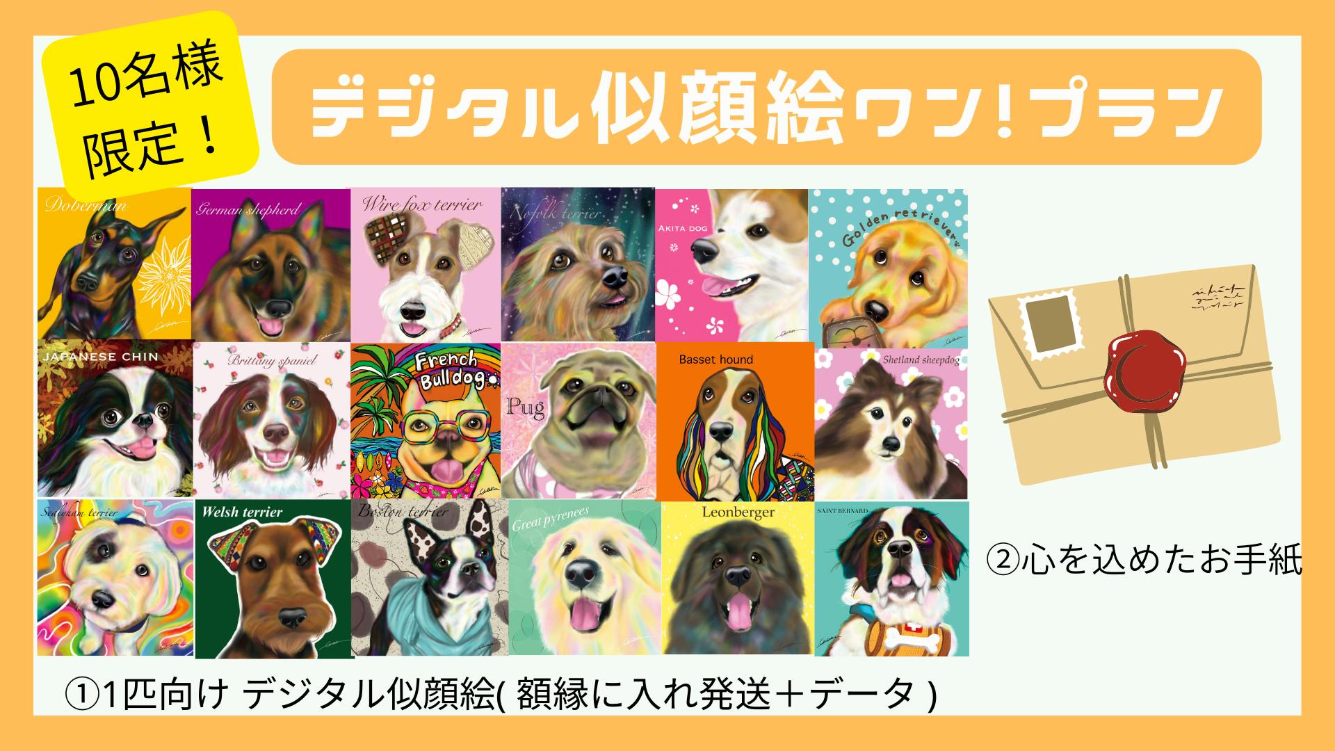 15000円▶︎ デジタル似顔絵印刷(1匹向け)+お礼のお手紙【10名様限定】