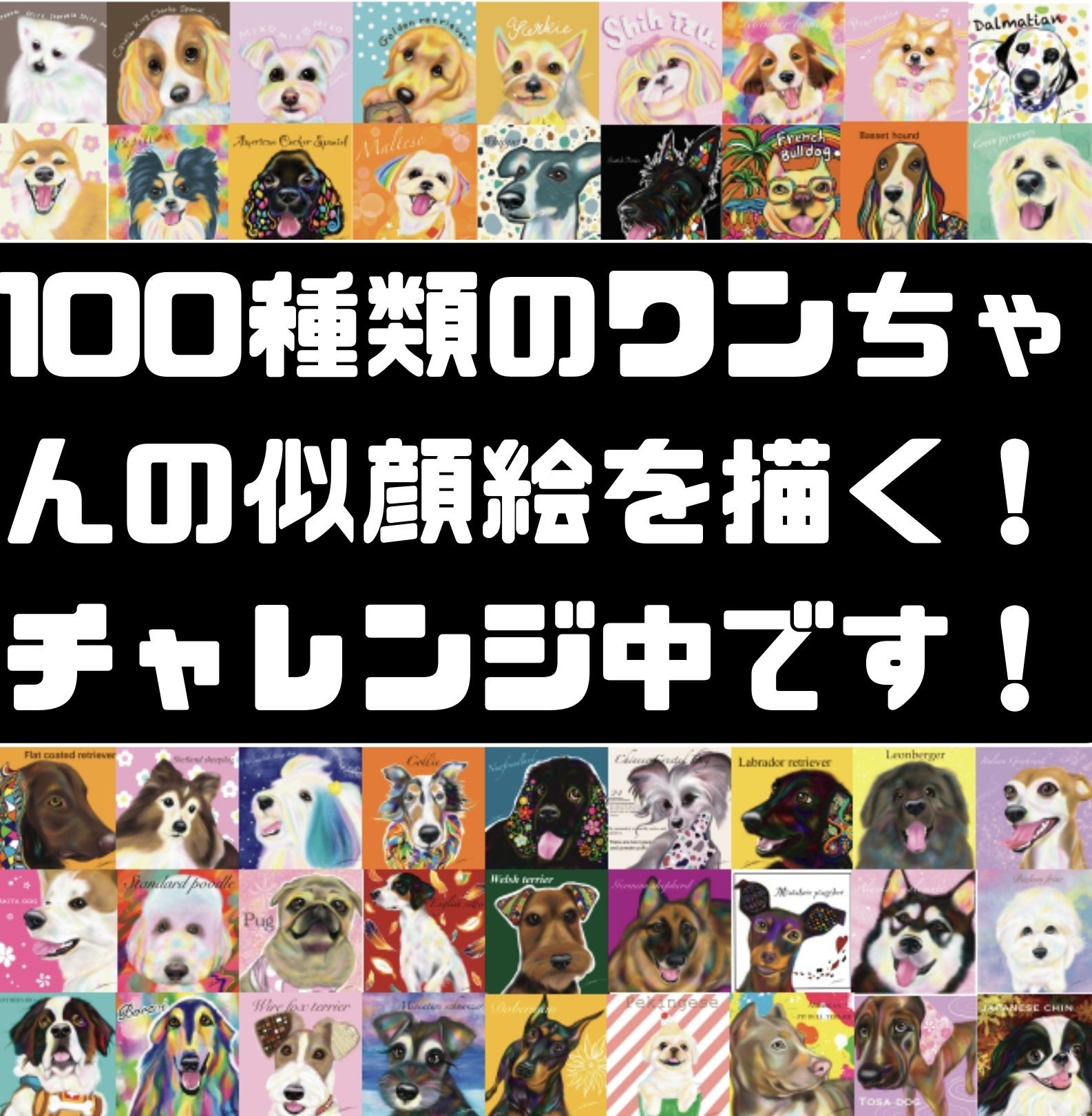 現在、100種類のワンちゃんを無償で描かせていただく